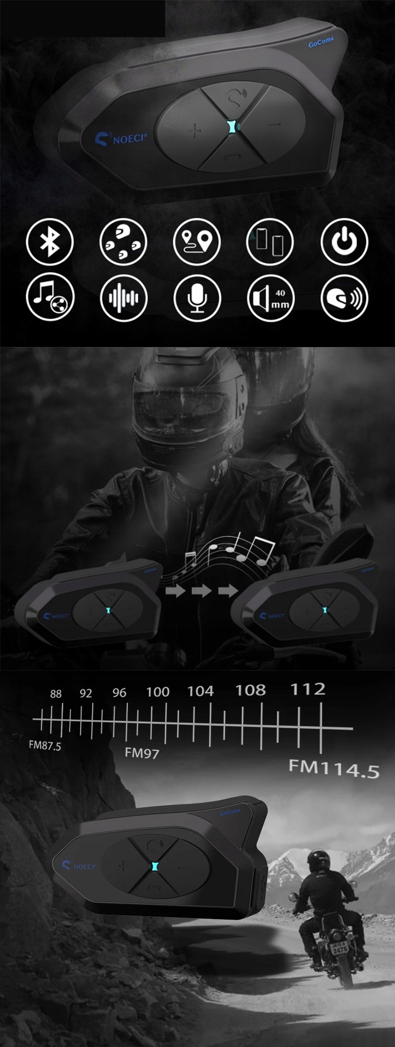 ✅МОТОЦИКЛЕТНИЙ ІНТЕРКОМ NOECI GOCOM4 З ТЕХНОЛОГІЄЮ BLUETOOTH 5.1 ДОЗВОЛЯЄ ОДНОЧАСНУ КОНФЕРЕНЦІЮ ДЛЯ 4 КОРИСТУВАЧІВ НА ВІДСТАНІ ДО 1200 МЕТРІВ✅