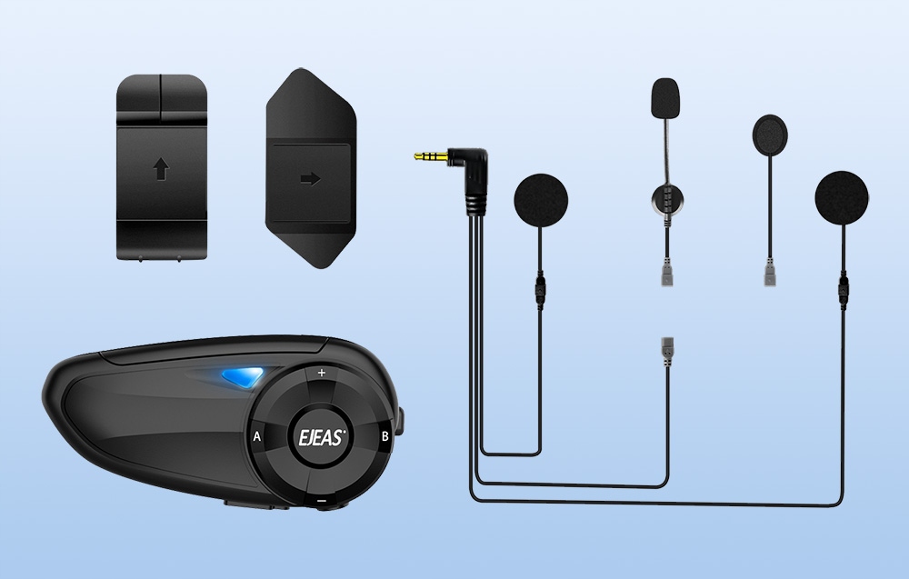 МОТОЦИКЛЕТНИЙ ІНТЕРКОМ EJEAS Q7 ДЛЯ ШОЛОМА IP67 ДО 800 М МАКС. 7 ЛЮДЕЙ ЗАСТОСУВАННЯ BT