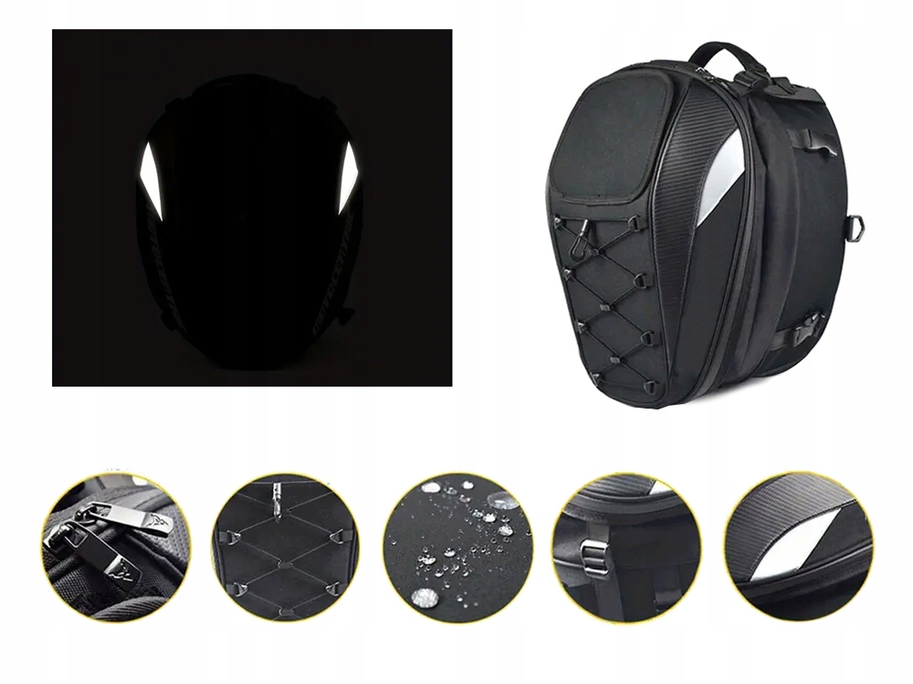 Багатофункціональна мотоциклетна сумка на сидінні. Надзвичайно корисний під час тривалих подорожей, ви можете упакувати в нього одяг, дрібні речі, їжу або шолом