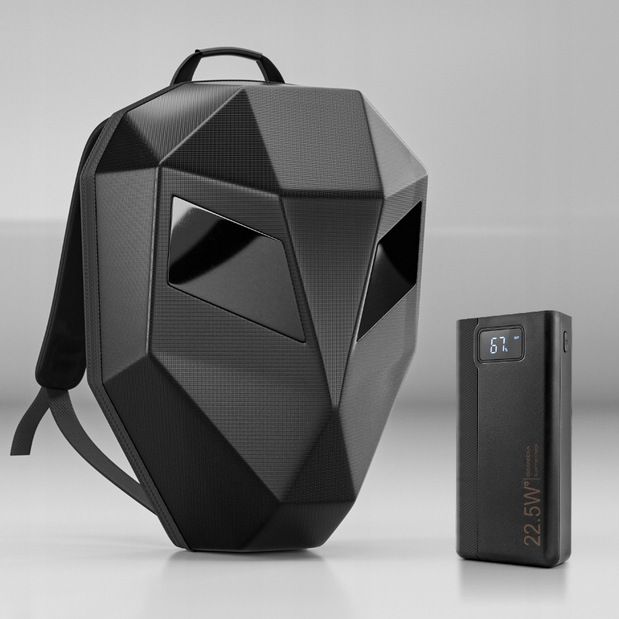 Мотоциклетний рюкзак Iron Man, світлодіодний екран, місткий водонепроникний шолом + Powerbank + Швидкий Powerbank 10000mAh 3A 22W PD 4x USB-A USB-C Apple Lightning Flashlight