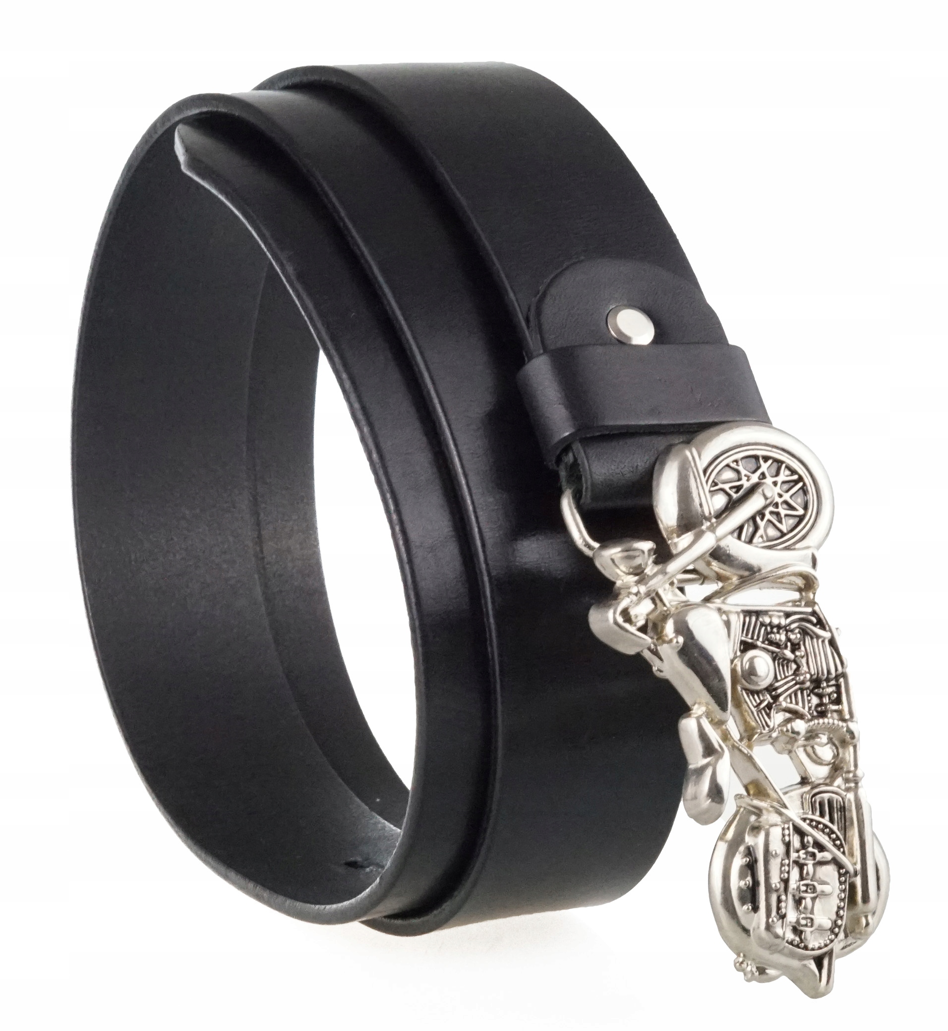 Чорний пояс — це поєднання елегантності та свободи, яке підходить як чоловікам, так і жінкам. Ремінь має красиву металеву пряжку з мотивом мотоцикла, що додає дизайну оригінальності та неповторності. Ідеально підходить для любителів двох коліс і не тільки.