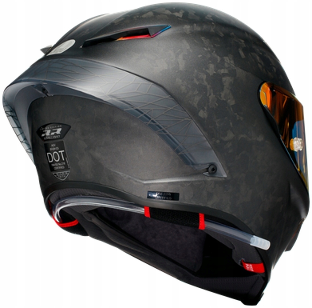 Perfection of Obsession виводить найдосконаліший у світі гоночний шолом на новий рівень завдяки обмеженій серії, присвяченій 75-річчю AGV. Він уособлює продуктивність легенд, продуктивність, яка б’є всі рекорди з 1947 року. Pista GP RR – це гоночний шолом AGV, який носять чемпіони світу. Саме тому він отримав нову омологацію FIM, яка підтверджує найвищий можливий рівень захисту навіть від небезпечних поворотів голови. Кожна деталь була розроблена, щоб забезпечити найвищу продуктивність, виготовлену з Carbonio Forgiato в цій ексклюзивній версії обмеженого випуску, тому її можна без зусиль носити. Форми та металеві вентиляційні отвори вивчені та протестовані спортсменами AGV, щоб забезпечити найкраще аеродинамічне проникнення та найбільшу стабільність на високих швидкостях, також завдяки інноваційному профілю заднього тонованого спойлера PRO Clear Ultravision, що входить до комплекту, є оптичним класом 1, є невід’ємною частиною протектора завдяки своїй товщині до 5 мм і панорамному огляду 190°. Це дозволяє водієві бачити трасу, суперників і перешкоди більш чітко, ніж будь-хто інший, що дозволяє повністю налаштовувати салон, даючи водієві можливість вибрати ідеальну товщину для верхньої частини голови, шиї та щік. Цей необхідний рівень комфорту дозволяє мотоциклісту зосередитися виключно на своїй меті.