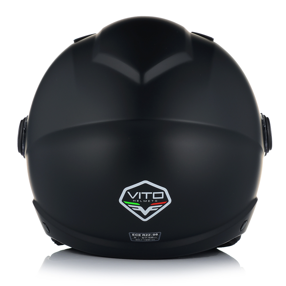 Шолом VITO SARENTA — безпечний мотоциклетний шолом, із сертифікатом безпеки ECE R 22.06. Ця модель має інноваційний корпус і виготовлена з високоякісних матеріалів. Вага цього шолома становить лише 1100 г. Ідеально підходить для міських і туристичних катань на скутерах і чопперах.