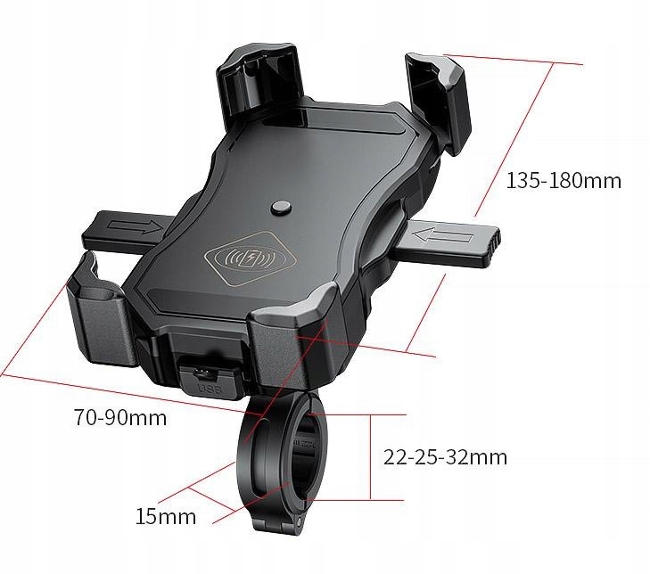 Тримач для мотоцикла із зарядним пристроєм для телефону - R13W Wireless - USB QC - 2in1