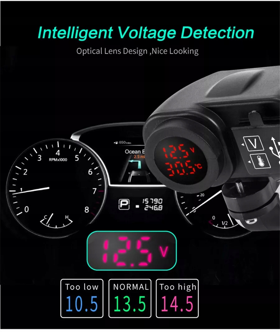 Функція «три в одному», включаючи USB-зарядний пристрій, термометр і вольтметр, економить місце та простіша у використанні.