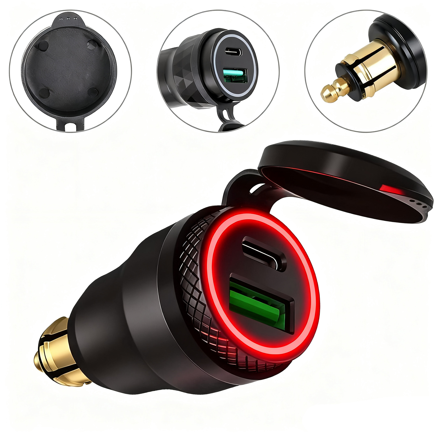 МОТОЦИКЛЕТНИЙ ЗАРЯДНИЙ ПРИСТРІЙ DIN РОЗЕТ (BMW) PD 3.0 USB C ВОЛЬТМЕТР ПЕРЕМИКАЧ
