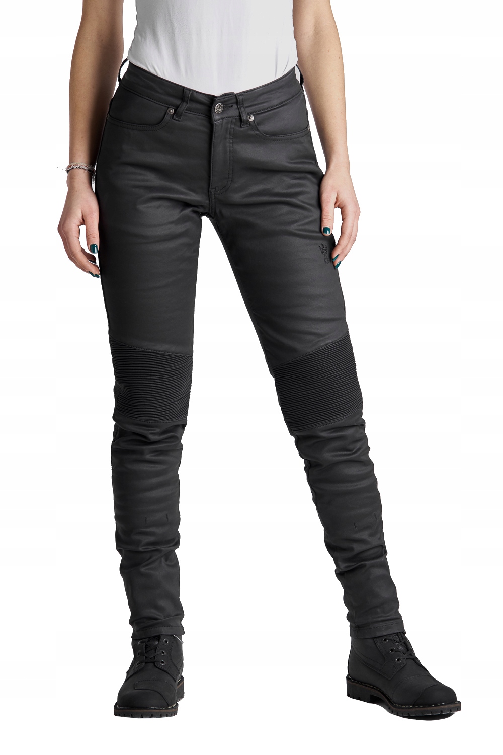 Цільні жіночі мотоциклетні джинси приталеного крою забезпечують чудовий захист. KUSARI KEV 02 виготовлені з міцного вощеного деніму вагою 9 унцій, що поєднує в собі максимальний комфорт і найвищу безпеку. Елегантний і стильний, з непомітною вишивкою логотипу Pando Moto на стегні. Вибираючи джинси Kusari Kev 02, ви можете насолоджуватися безпечним водінням завдяки використанню захисної, посиленої підкладки DuPont™Kevlar® у критичних зонах, які особливо схильні до потертостей та ударів. Додатково штани оснащені наколінниками, розміщеними в кишенях з двоступеневою регулюванням.