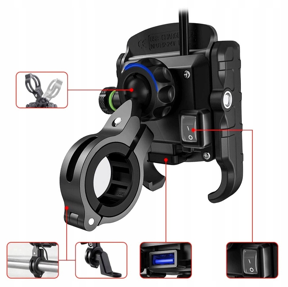 Це не лише суцільна та безпечна ручка для вашого телефону або навігації. Набір також дозволяє стабільна зарядка пристроїв , просто підключіть його джерело живлення 12V-24V.