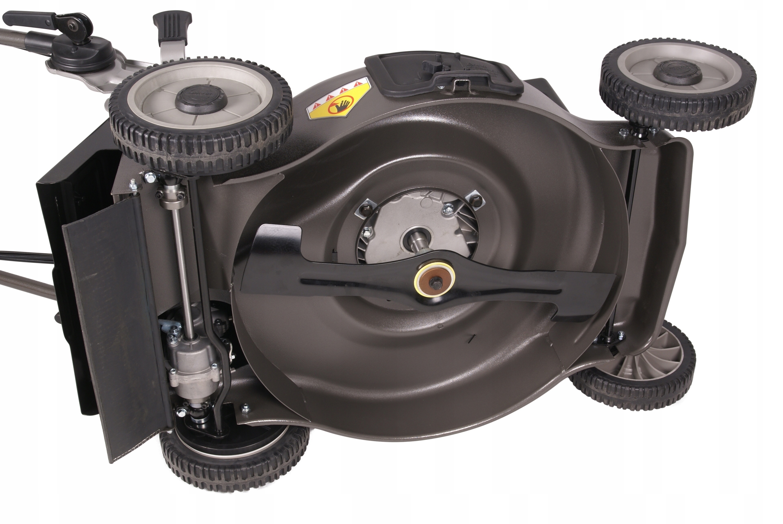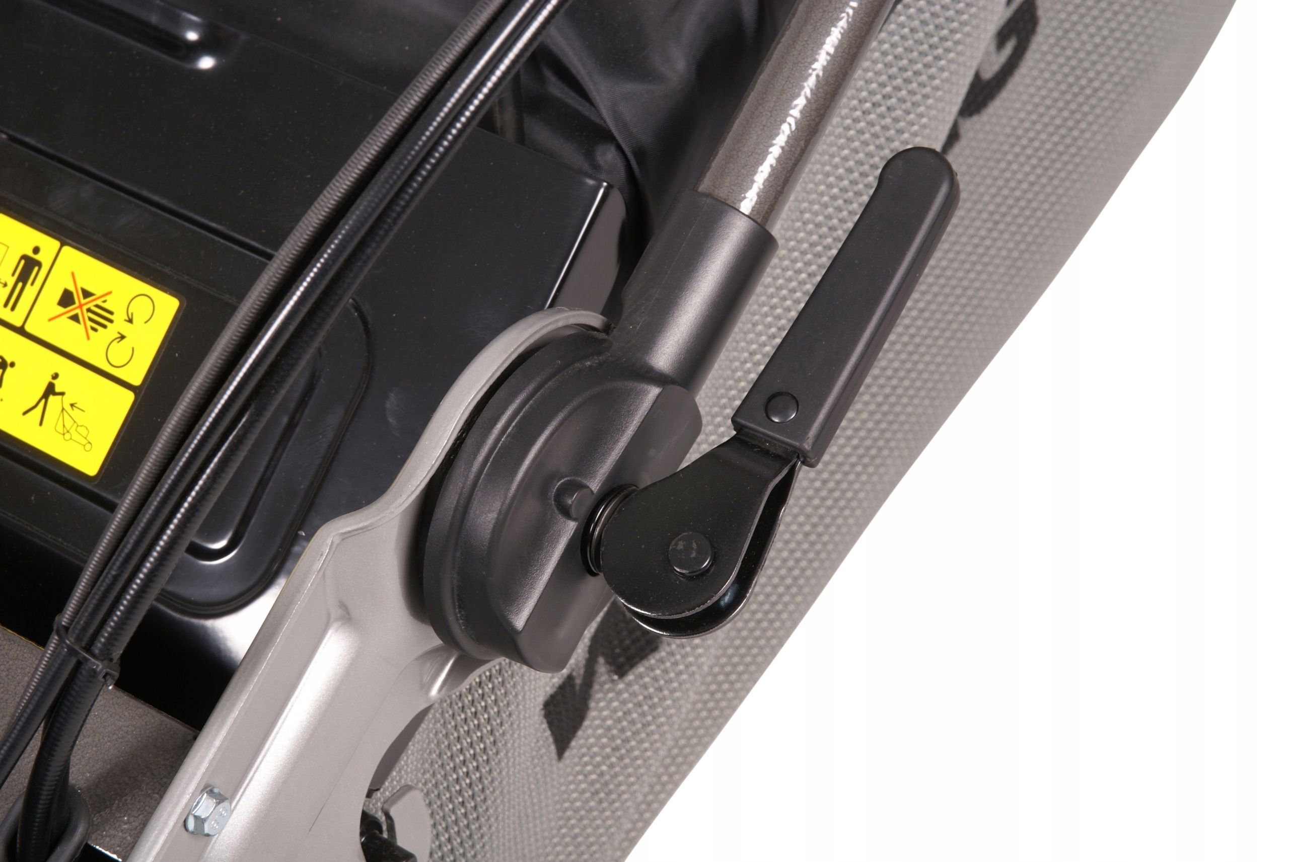 - ПОТУЖНЕ Центральне регулювання висоти косіння, один важіль змінює положення всіх коліс. Потужний, зручний важіль регулювання ручки зі СТАЛЕВИМ гребінцем регулювання.