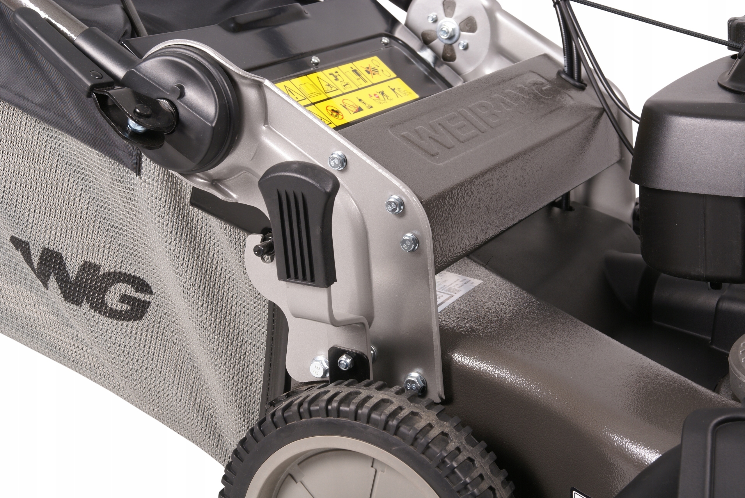 - ПОТУЖНІ рукоятки з безступінчастим чавунним регулятором висоти ручки - ДОВГОВІЧНІСТЬ і НАДІЙНІСТЬ, а також противага для маневрування - робить косарки WEIBANG НАЙЛЕГШИМИ ДЛЯ МАНЕВРЮВАННЯ на РИНКУ.