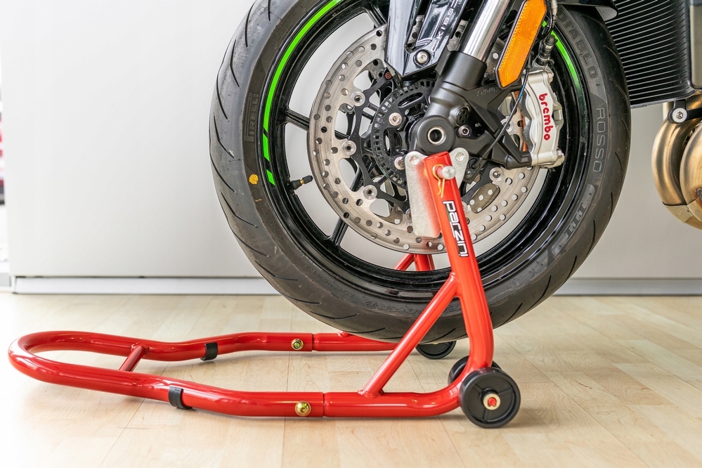 Parzini Strada — це ідеальне рішення для мотоциклістів, яким потрібна міцна, проста у використанні та міцна передня підставка для обслуговування та зберігання мотоцикла.