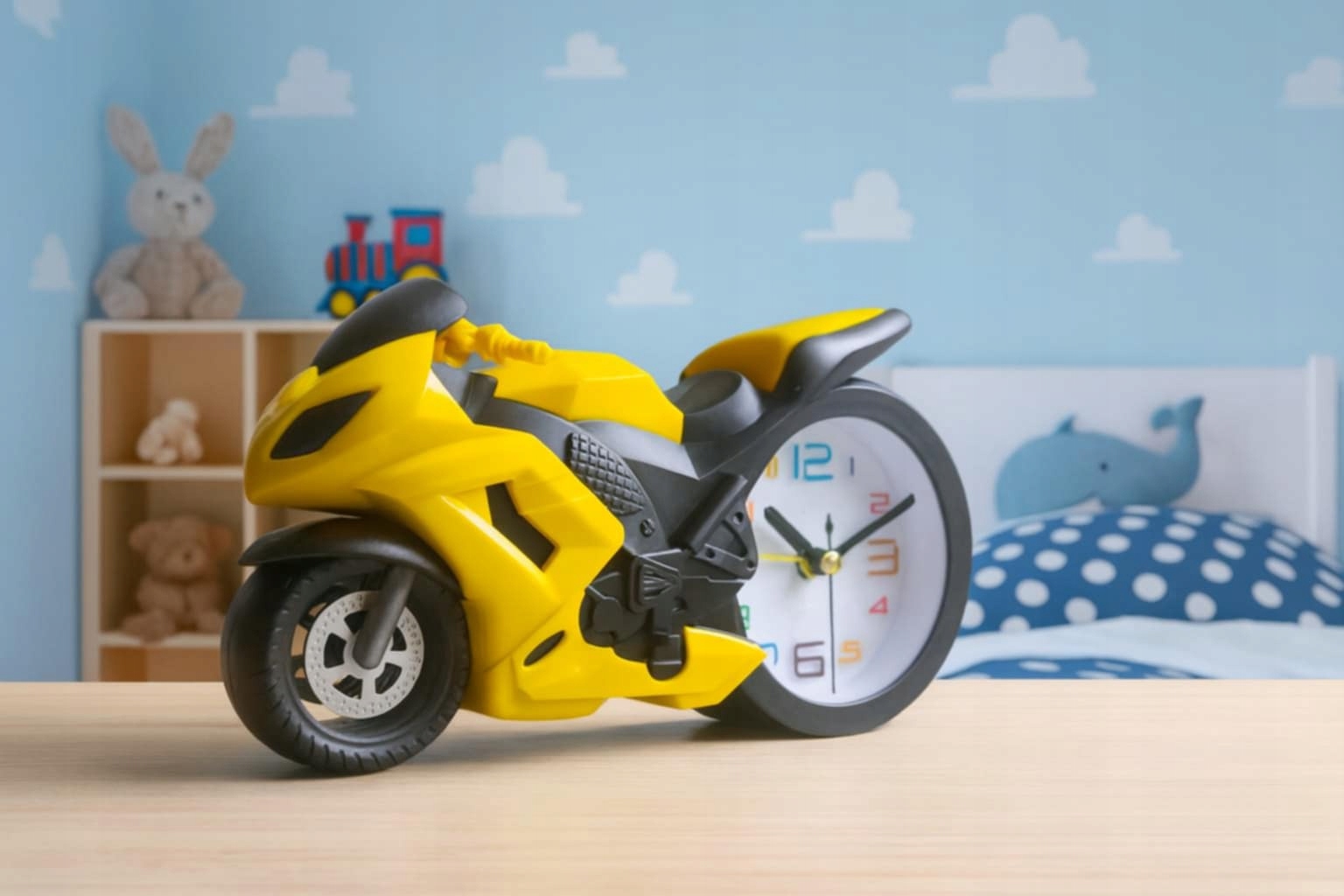 Додайте стилю та характеру кімнаті вашої дитини! Цей унікальний годинник у формі спортивного мотоцикла є не тільки практичним гаджетом, але й привабливою прикрасою.