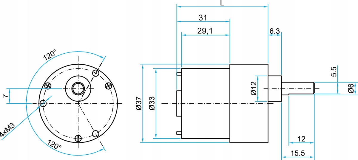 Щітковий двигун постійного струму з редуктором MGB37528126000-30K