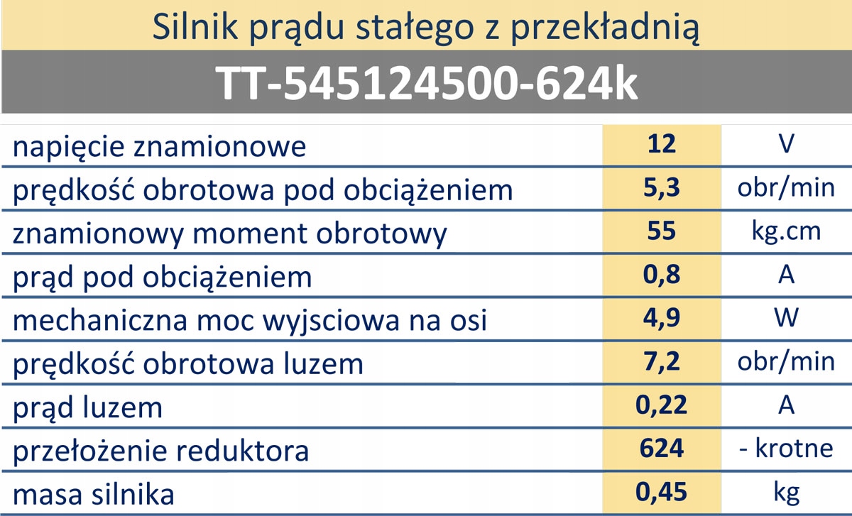 - швидкість обертання 5,3 об/хв при напрузі живлення 12 В