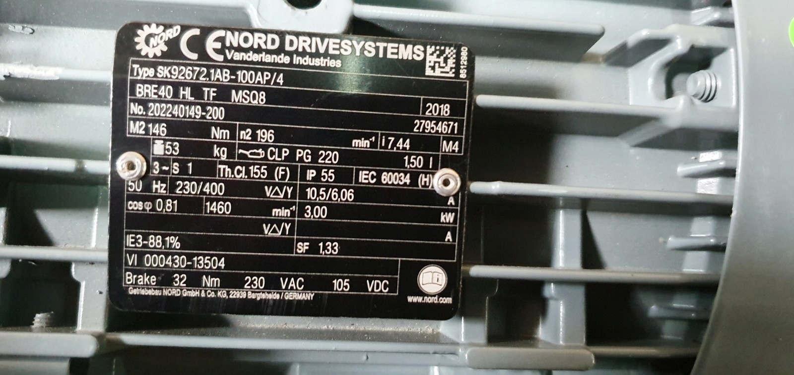 Мотор-редуктор NORD 3kw 196 об/хв Гальма