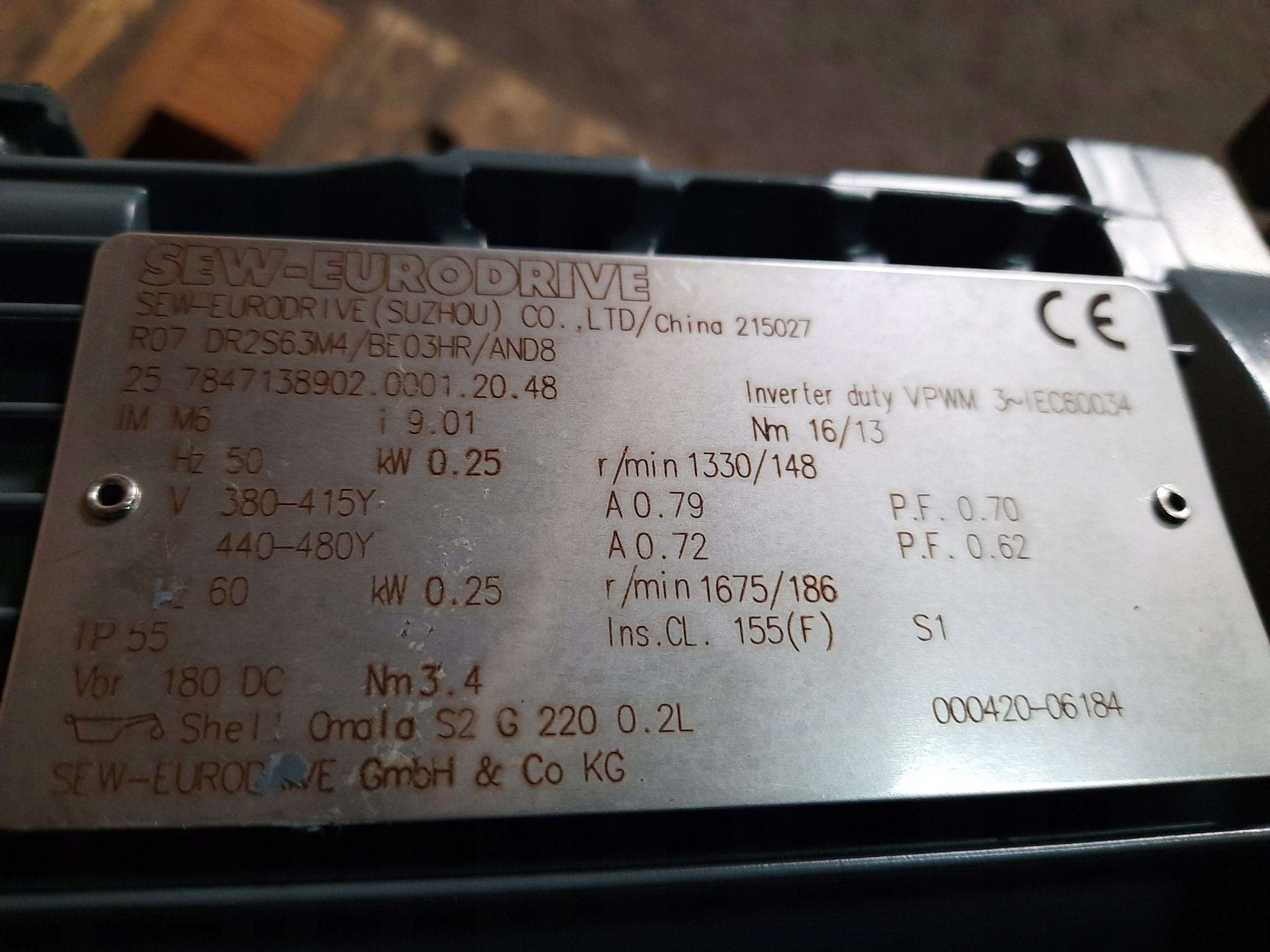 Просматривая «Мотор-редуктор SEW 0,25 кВт 148 об/хв Гальма», вы можете быть уверены, что данный товар из каталога «Мотор-редукторы» будет доставлен из Польши и проверен на целостность. В цене товара, указанной на сайте, учтена доставка из Польши. Внимание!!! Товары для Евросоюза, согласно законодательству стран Евросоюза, могут отличаться упаковкой или наполнением.