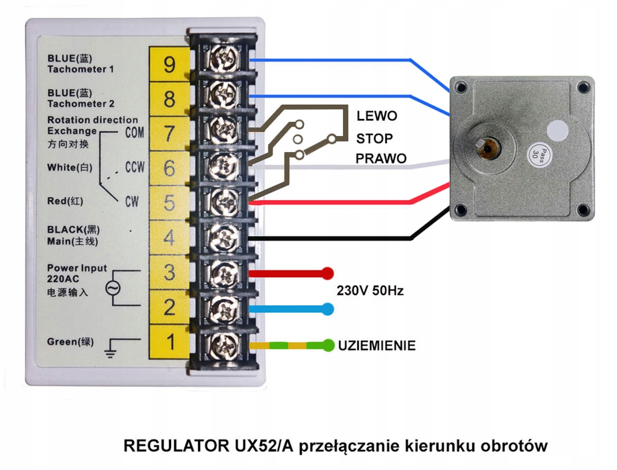 - встановлення напрямку обертання двигуна за допомогою перемички на задній панелі контролера або шляхом додавання зовнішнього перемикача. Дивіться креслення та фотографії.