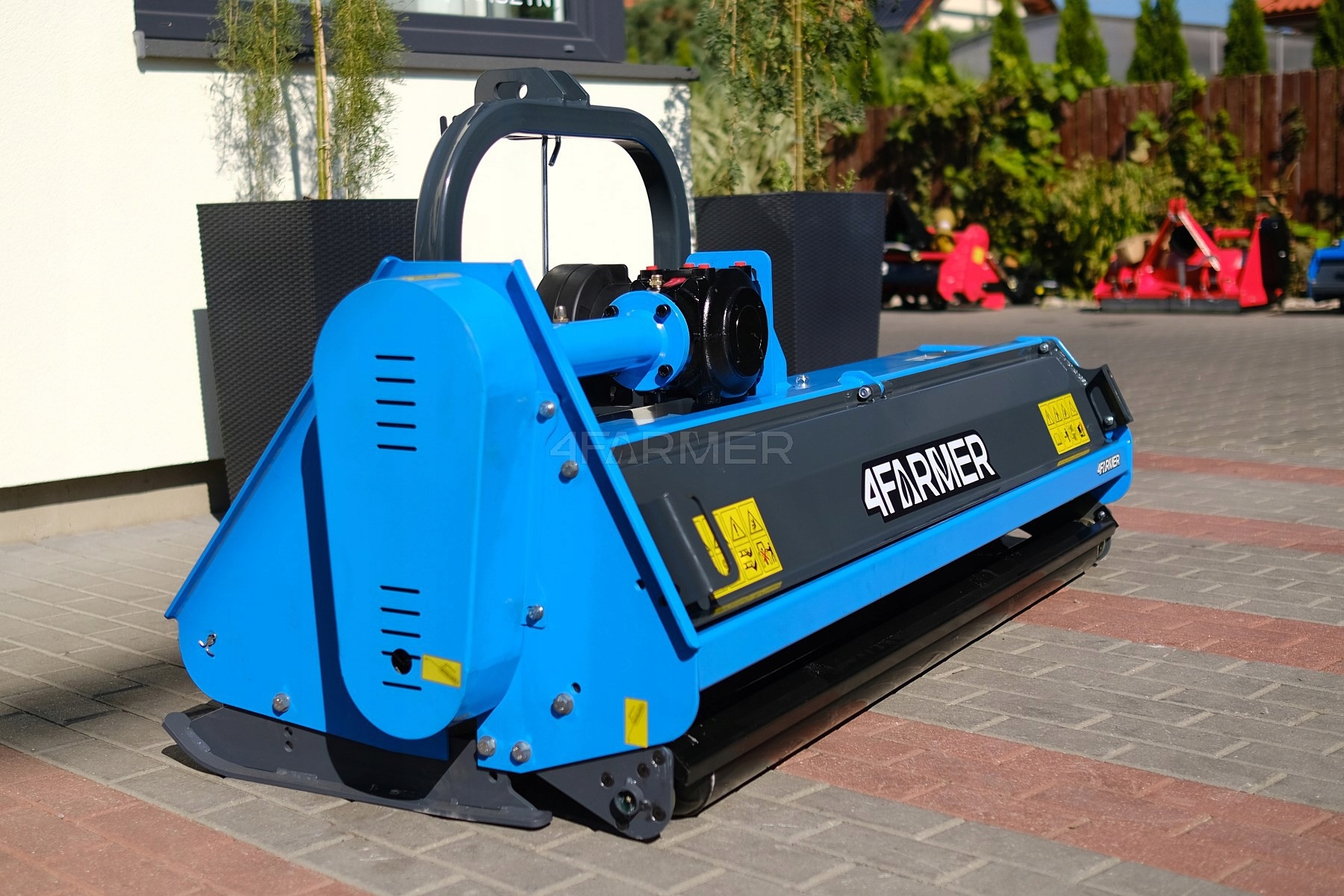 Цеп косарка (мульчер)EFGC 155D 4FARMERмає ширину зрізу 155см. На додаток до робочого вала, оснащеного спірально розташованими подрібнювальними битерами, косарка також має задній (слідуючий) вал. Це дозволяє регулювати висоту зрізу та утримувати косарку на вибраній висоті. Привід від вала відбору потужності трактора 540 об/хв.