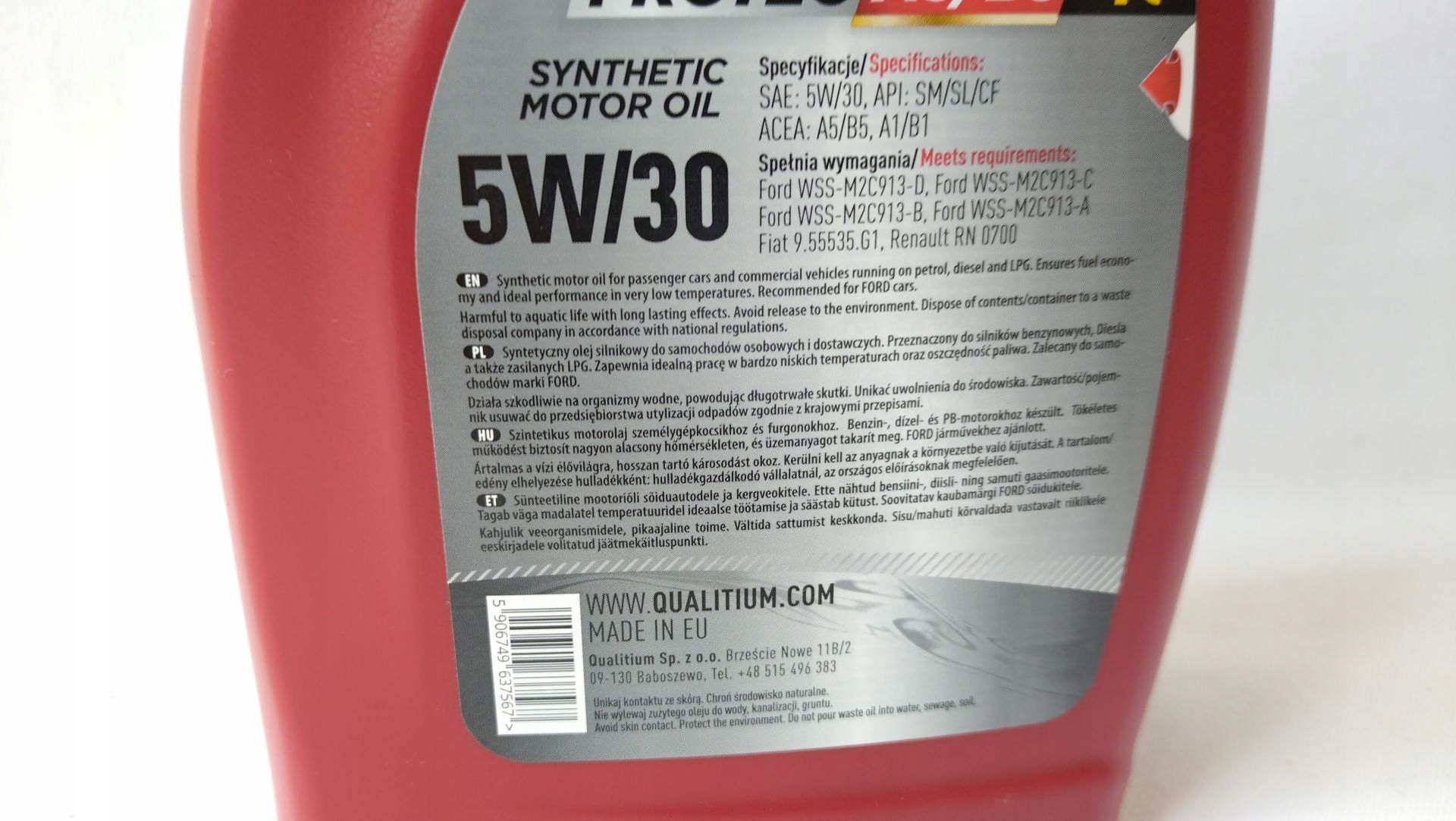 Моторна олива Qualitium Protec 5 л 5W-30 + QUALITIUM Protec A5/B5 5W30 - Volvo Ford 913D 1L