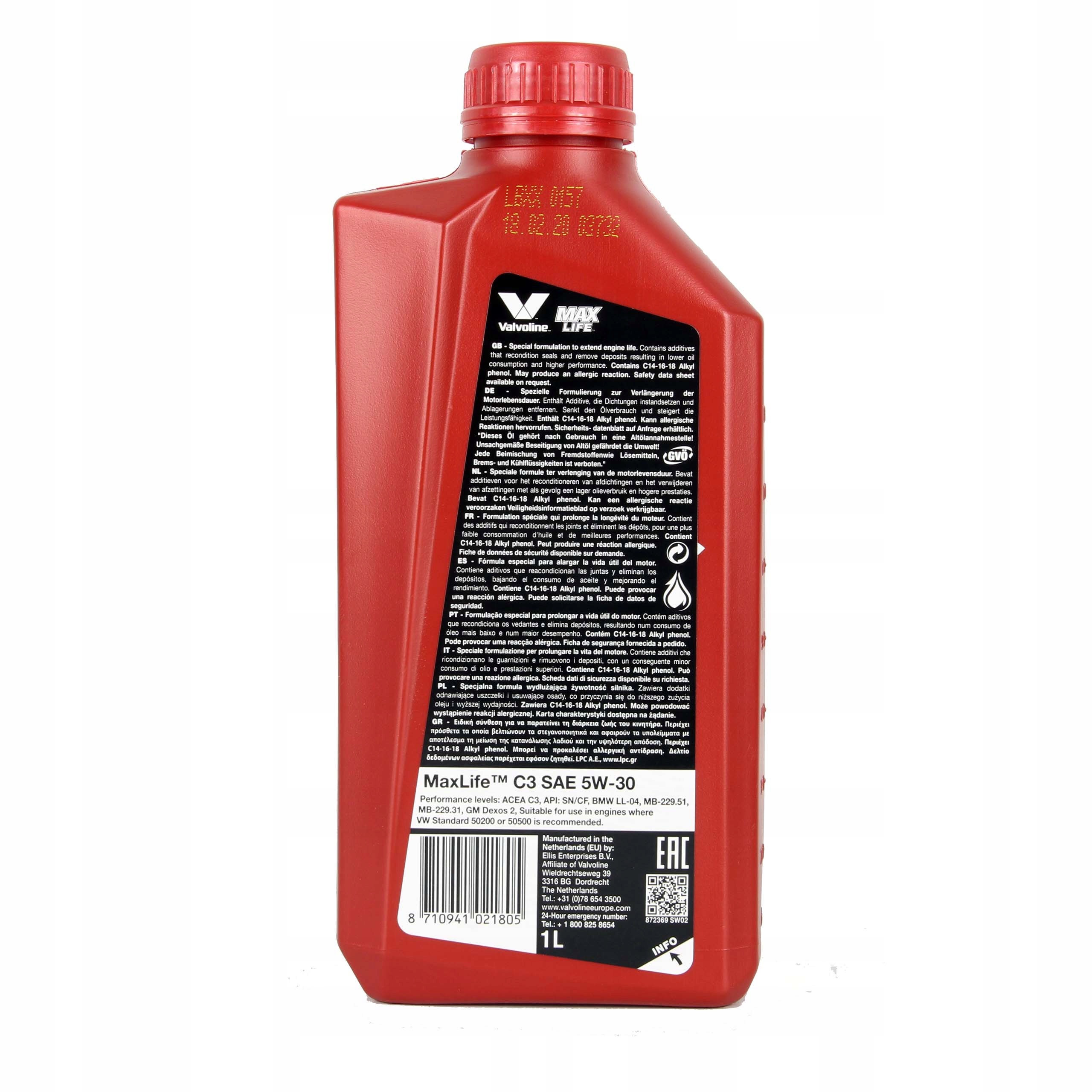 КЛАС ЯКОСТІ: ACEA C3, API: SN/CF СТАНДАРТ/СХВАЛЕННЯ: BMW LL-04, GM Dexos 2, MB-229.51, 229.31, VW 50200/50500