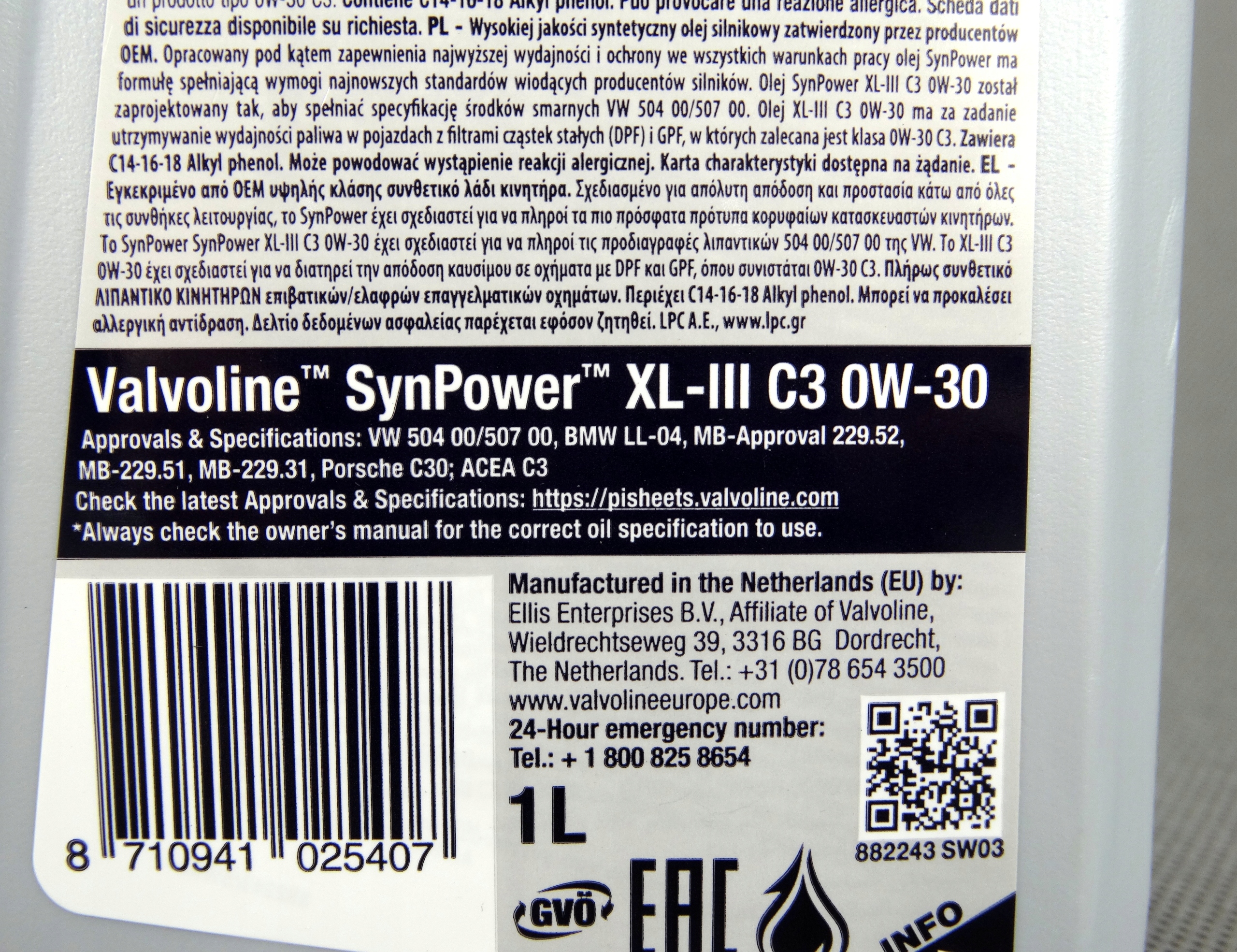 Оплачивая «Моторна олива Valvoline Synpower XL-III C3 1 л 0W-30», вы можете быть уверены, что данное изделие из каталога «Синтетические» будет доставлено из Польши и проверено на целостность. В цене товара, указанной на сайте, учтена доставка из Польши. Внимание!!! Товары для Евросоюза, согласно законодательству стран Евросоюза, могут отличаться упаковкой или наполнением.