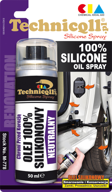 Силіконове мастило в спреї — це прозорий, когезійний, нейтральний засіб із двома основними функціями: регенеруючою та мастильною. Незамінний в догляді за автомобільними ущільнювачами з гуми, шкіри та пластику. Надає гумі еластичність і захищає її від затвердіння, кришення, розтріскування і старіння. Висока чистота та відсутність запаху та кольору дозволяють застосовувати продукт у місцях, де звичайне мастило може спричинити забруднення.