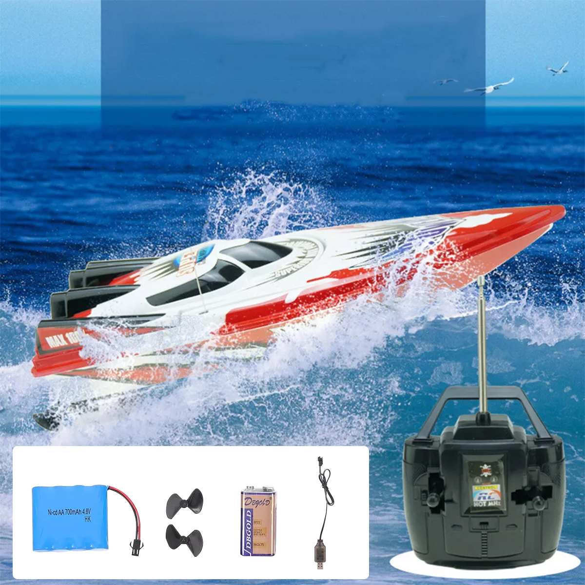 Мабуть кожна дитина мріє взяти участь у моторних змаганнях. Тепер це можливо, ви можете спробувати свої сили у водно-моторному спорті. Радіокерований човен може плавати в усіх напрямках, а комфортну навігацію забезпечує пульт дистанційного керування.