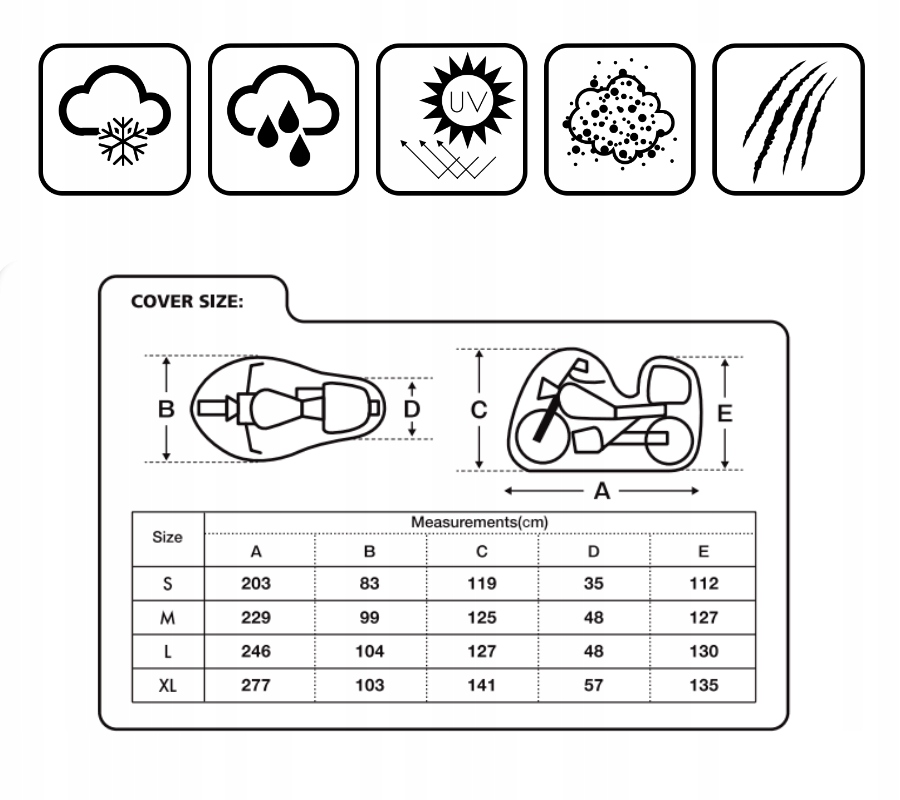 покриття, виготовленої з високоякісної водонепроникної тканини, є не лише гарантією захисту від дощу та вологи, але й твердий бар'єр проти інших несприятливих погодних умов. Завдяки спеціальній обробці матеріалів та використанню передових технологій виробництва обкладинка представлена Frost, що робить його незамінним аксесуаром взимку. Крім того, його дизайн забезпечує захист від інших екстремальних умов, таких як сніг, вітер або УФ -промені. Завдяки цьому мотоцикл всебічно захищено протягом року, незалежно від погоди та переважаючі погодні умови.