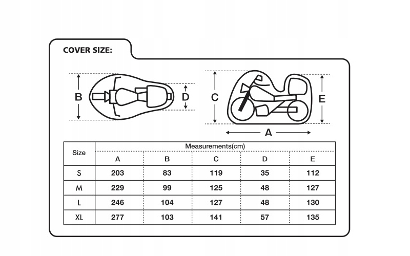 Specification of the cover: h2> - Motorcycle cover with size M (for motorcycles, mopeds and scooters with a trunk)