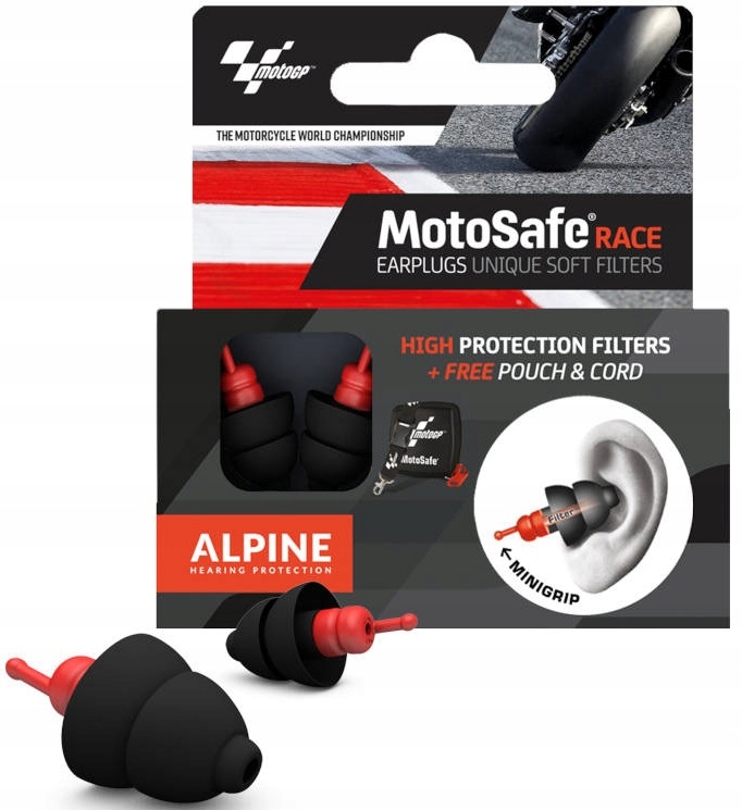 Затички для вух Alpine MotoSafe MotoGP запобігають пошкодженню слуху та втомі, спричиненим їздою на мотоциклі. Матеріал, з якого виготовлені пробки, AlpineThermoShape™, є антиалергічним - не містить силіконів. Завдяки цьому вуха не дратуються, не пітніють і не відчувають неприємного свербежу.