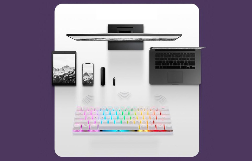 - Універсальна сумісність: Motospeed SK62 працює з різними пристроями, включаючи комп’ютери, ноутбуки, телефони та планшети, і підтримує кілька систем.
