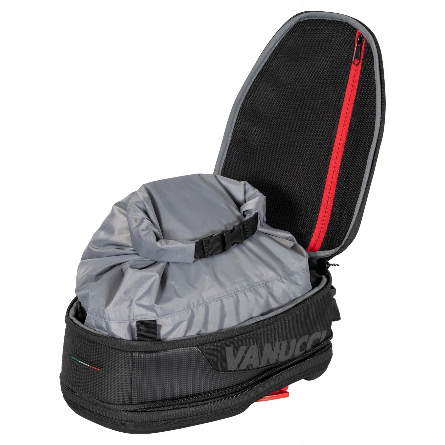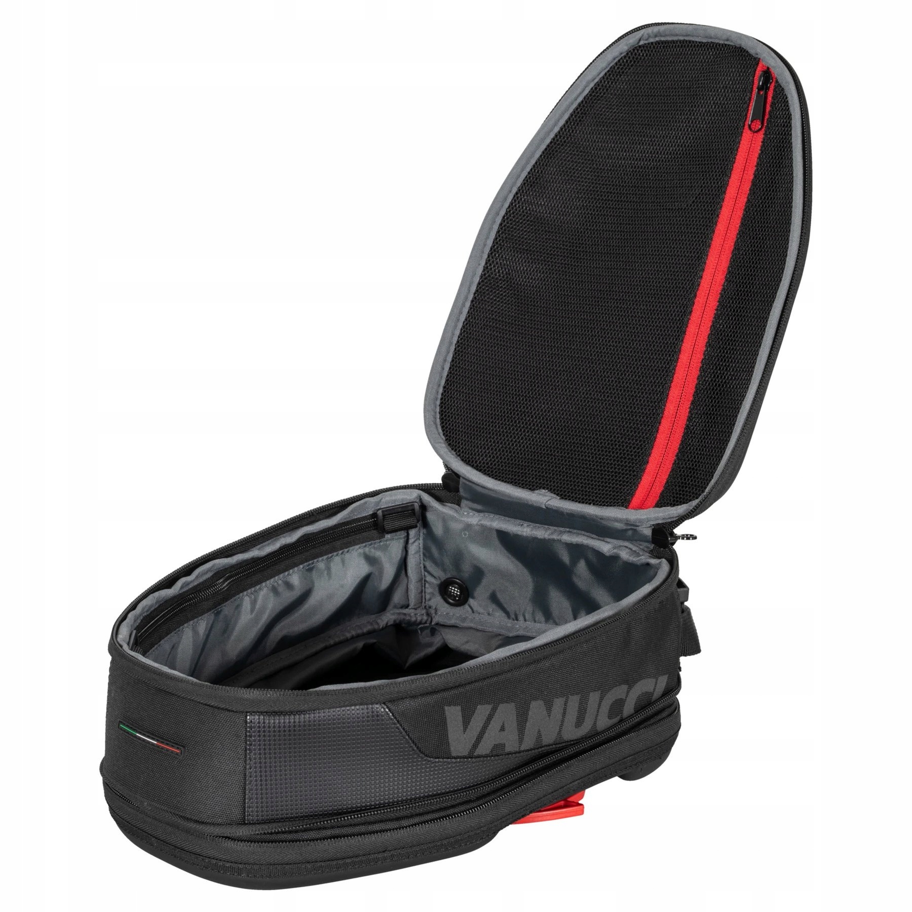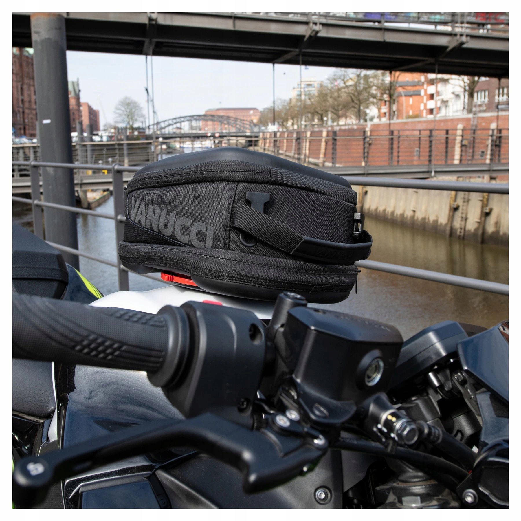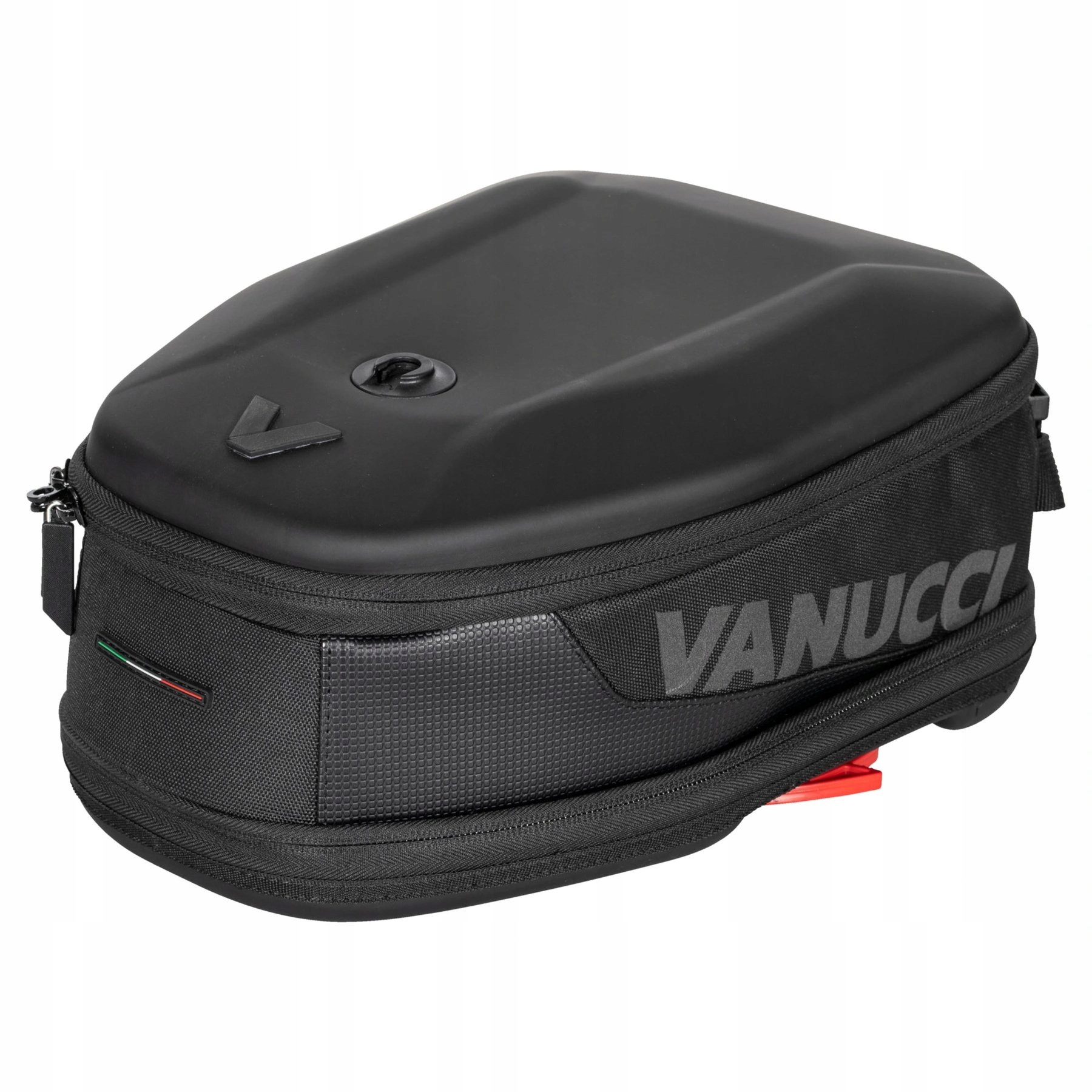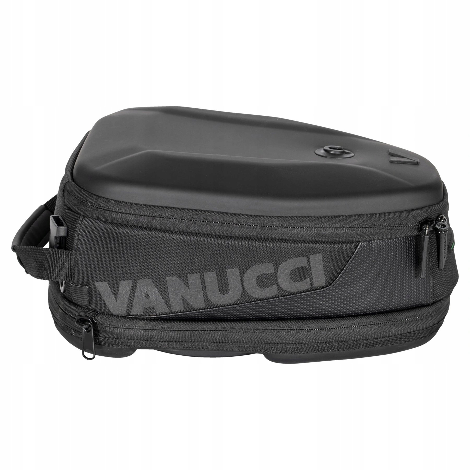 Тимчасово можна використовувати сумку на бак Vanucci *Tanklock Sportivo 5 – 8 л* прикріпити до верхньої частини баку мотоцикла. Це дуже практично, коли потрібно взяти з собою кілька дрібниць, наприклад ключі, гроші, документи, носові хустинки, мобільний телефон або засіб для чищення козирка. Vanucci *Tanklock Sportivo 5 - 8 l*, який був спеціально розроблений для використання з кільцем Givi *Tanklock*, складається з міцного, стійкого до ультрафіолету, водонепроникного та міцного текстильного матеріалу. . У цьому варіанті знімна водонепроникна внутрішня сумка та те, що основне відділення можна збільшити з 5 до 8 літрів за допомогою блискавки, дуже практичні. * Sportivo * також має ручку для перенесення та світловідбиваючий напис «Vanucci».