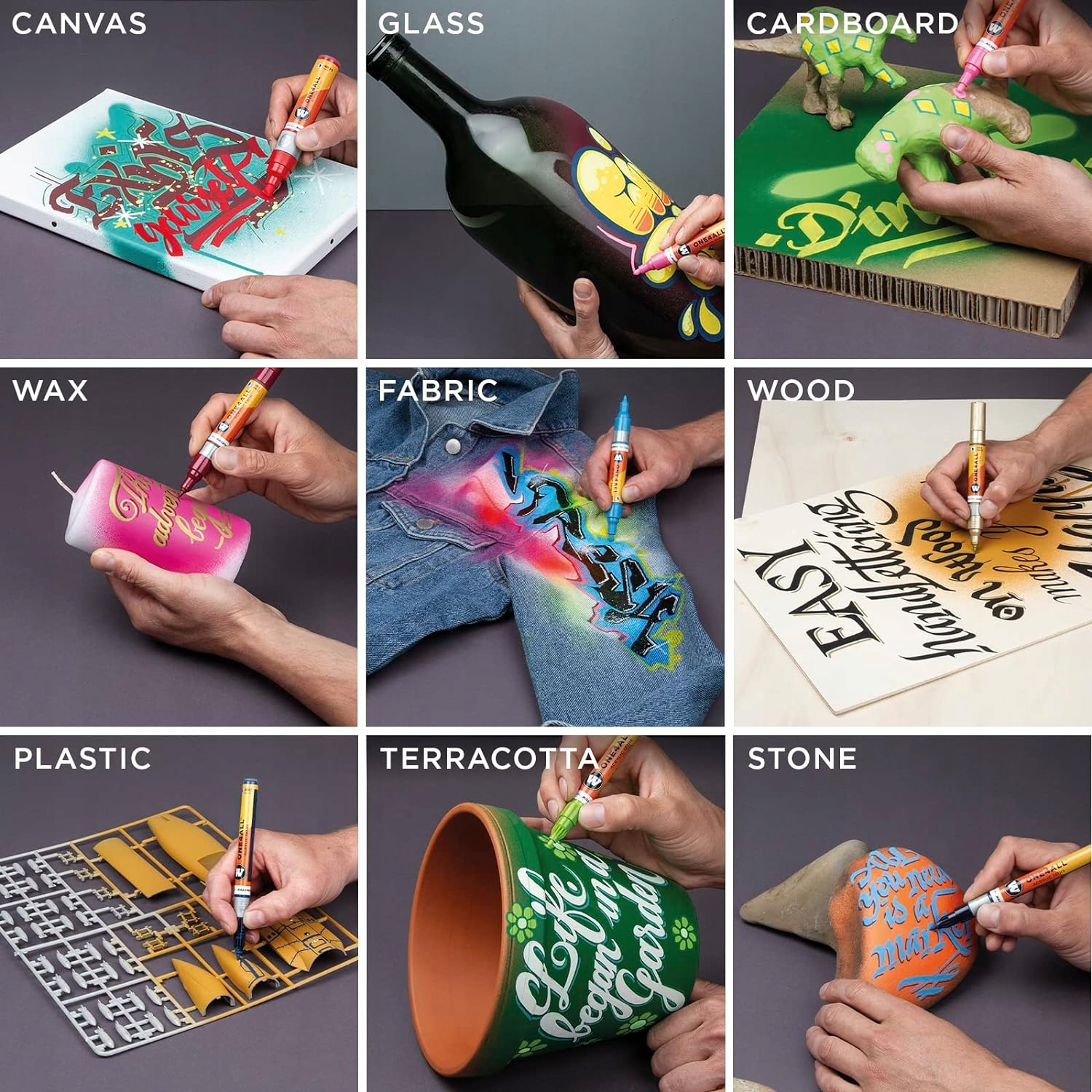 - Універсальне використання (для фарбування після шкіри, скла, пластику, металу, деревини, текстилю, бавовни, теракот тощо)