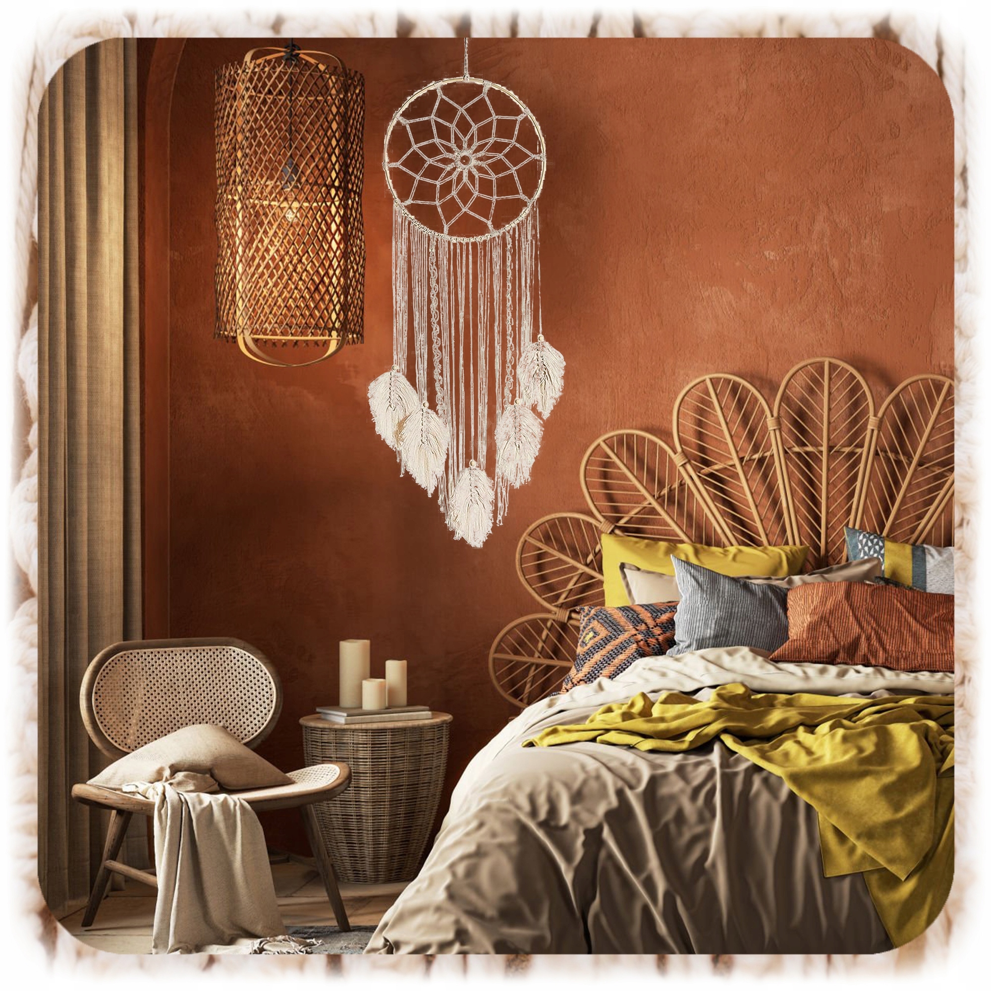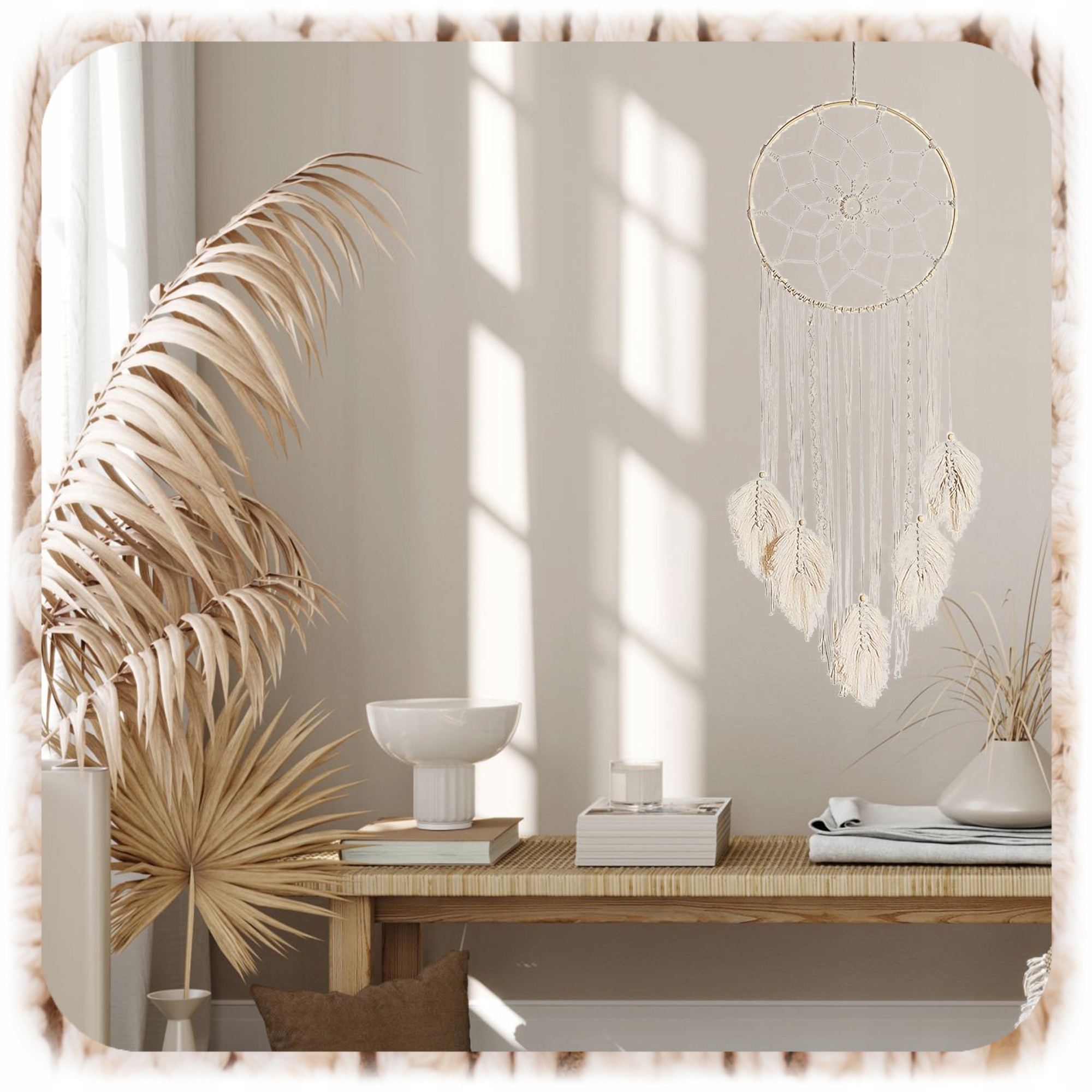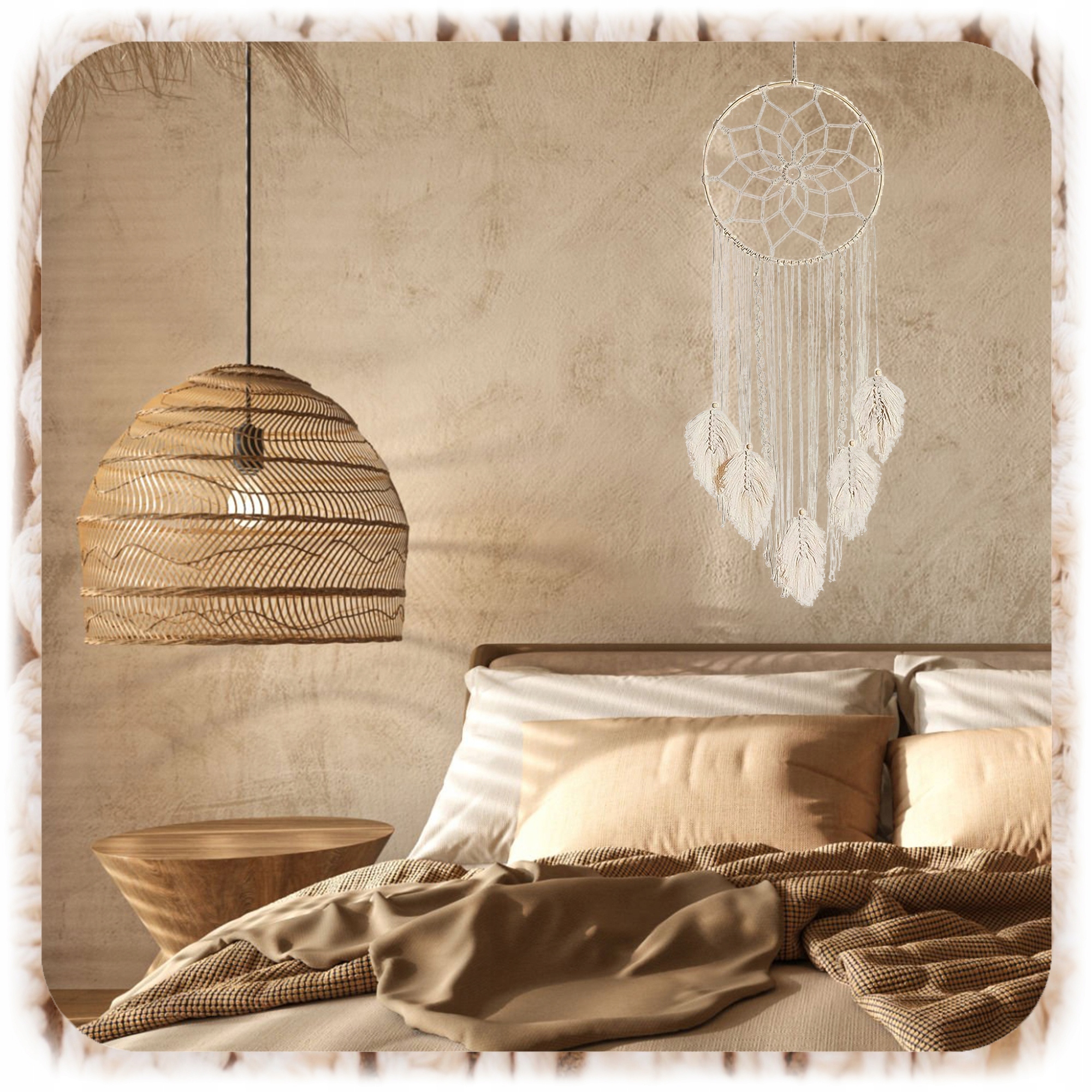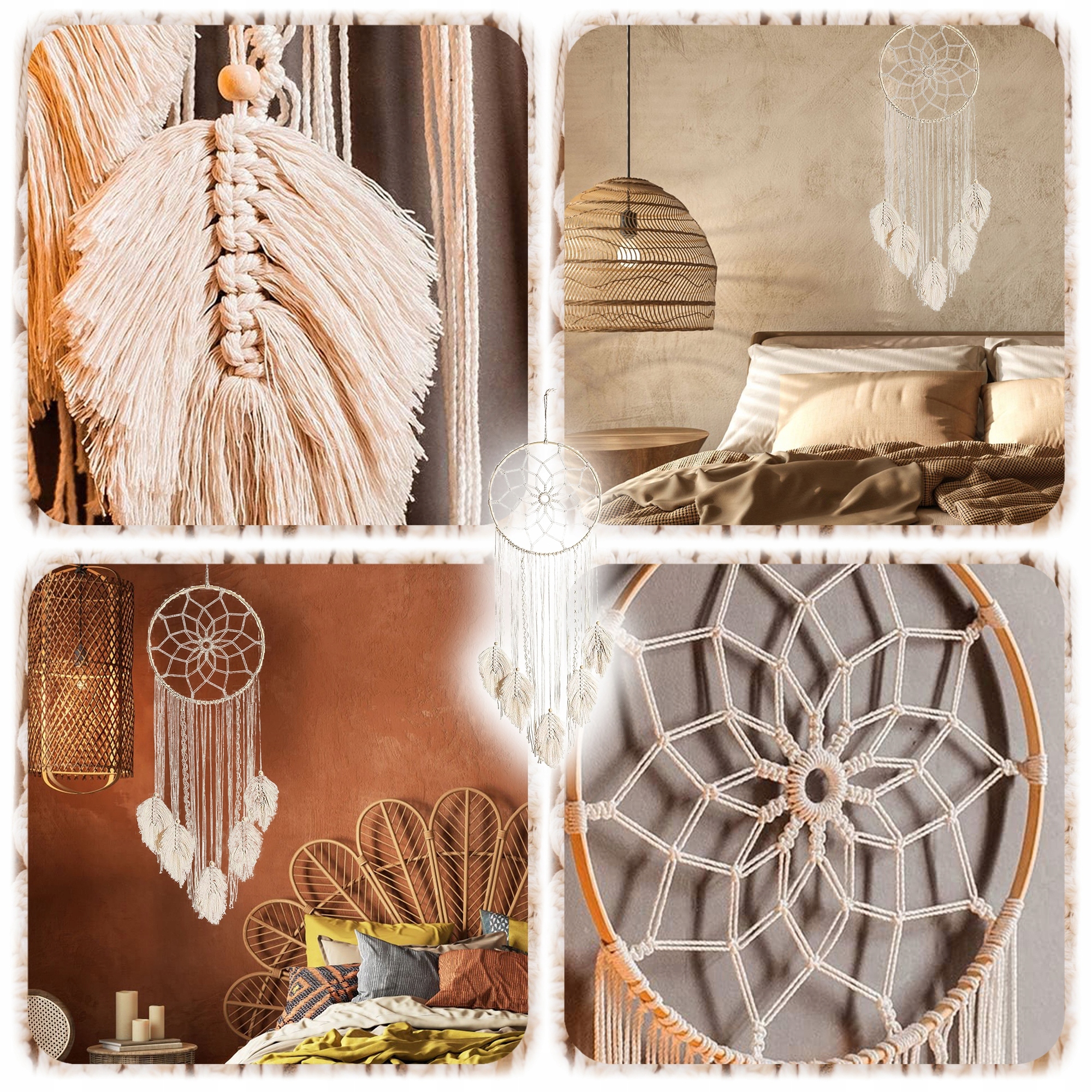 МОТУЖКА НАСТІННА ДЕКОРАЦІЯ ЛОВЕЦЬ СНІЙ МАКРАМЕ ДЛЯ СТІНИ BOHO ВИСИТЬ ЛИСТЯ