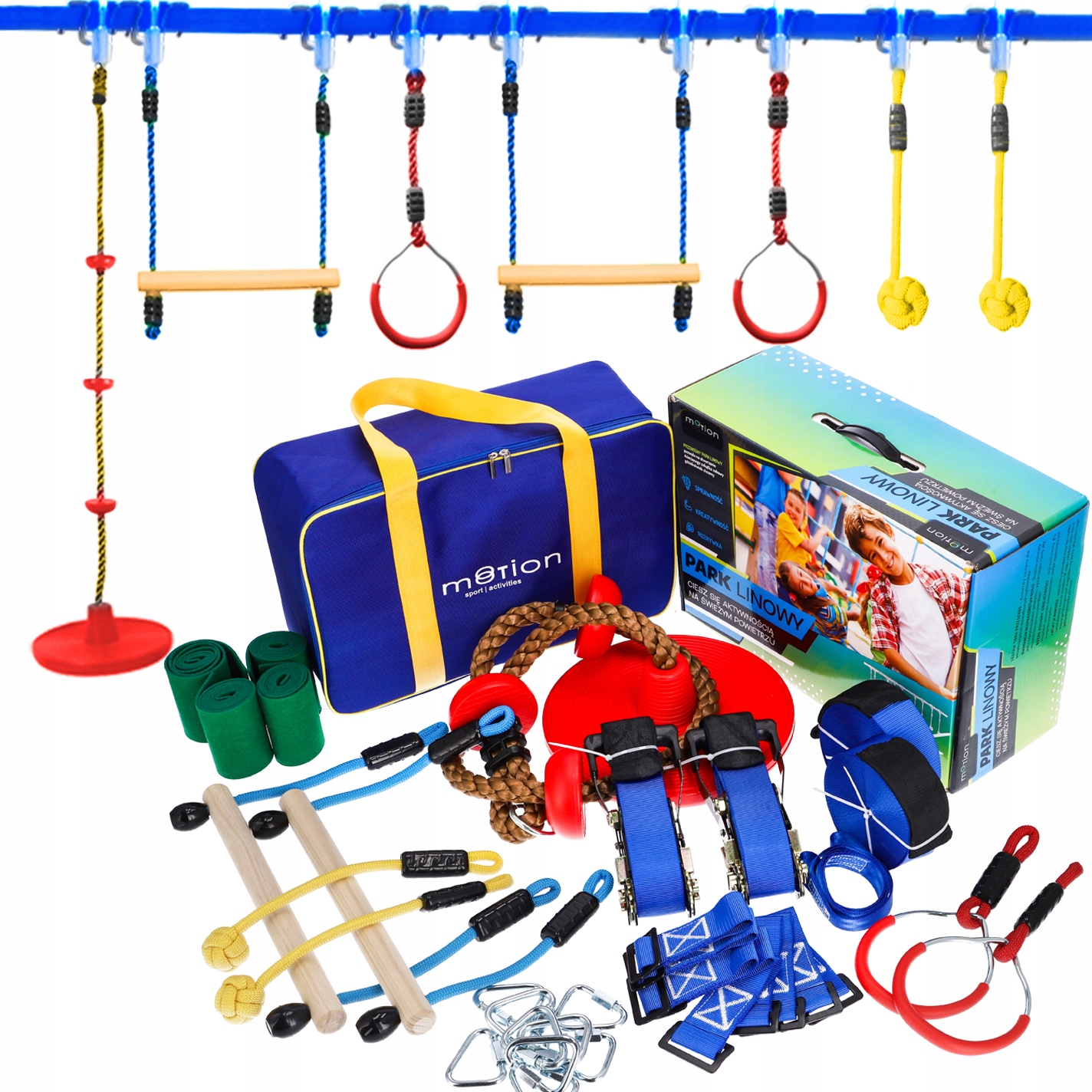 Мотузкова смуга перешкод - MOTION - чудова ідея для активних розваг, а також альтернатива для підтримки правильного розвитку дитини через гру і фізичні вправи на свіжому повітрі.