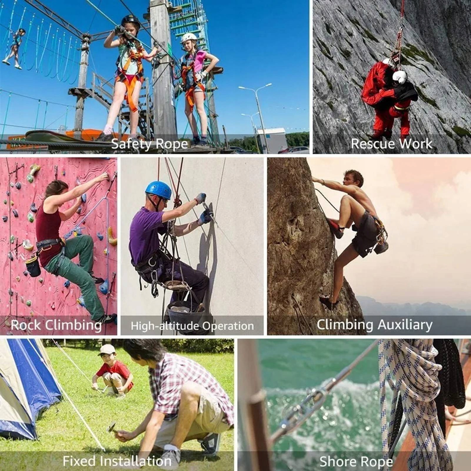 5. Широке застосування: ця мотузка дуже підходить для альпінізму, кемпінгу, походів, катання на човнах, риболовлі, спелеології, інженерії тощо. Це також ідеальний вибір для домашніх тварин.