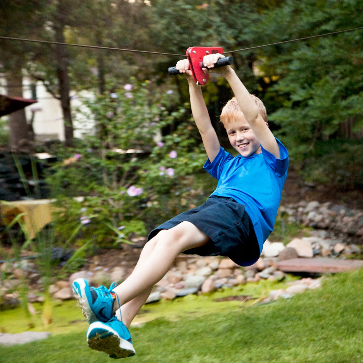 ... це до 25 метрів чудова забава на повній швидкості! Це дивовижна привабливість для дітей, відома їм з парків з мотузками або парками розваг. Тепер він може мати таку привабливість у власному саду і нескінченно використовувати його під керівництвом батьків.