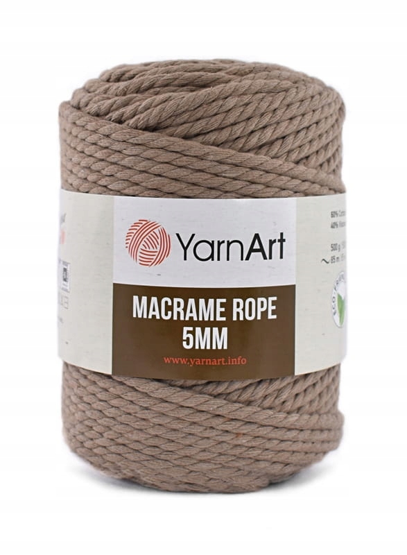 Мотузка для макраме YarnArt 5 мм являє собою нитку, скручену з багатьох бавовняних ниток. Бавовна з віскозою робить шнурок м'якшим на дотик. Завдяки відсутності серцевини струна більш гнучка, а конструкція легша. Ідеально підходить для плетеного макраме, аксесуарів для дому, а також можна розчісувати мотузку для макраме.