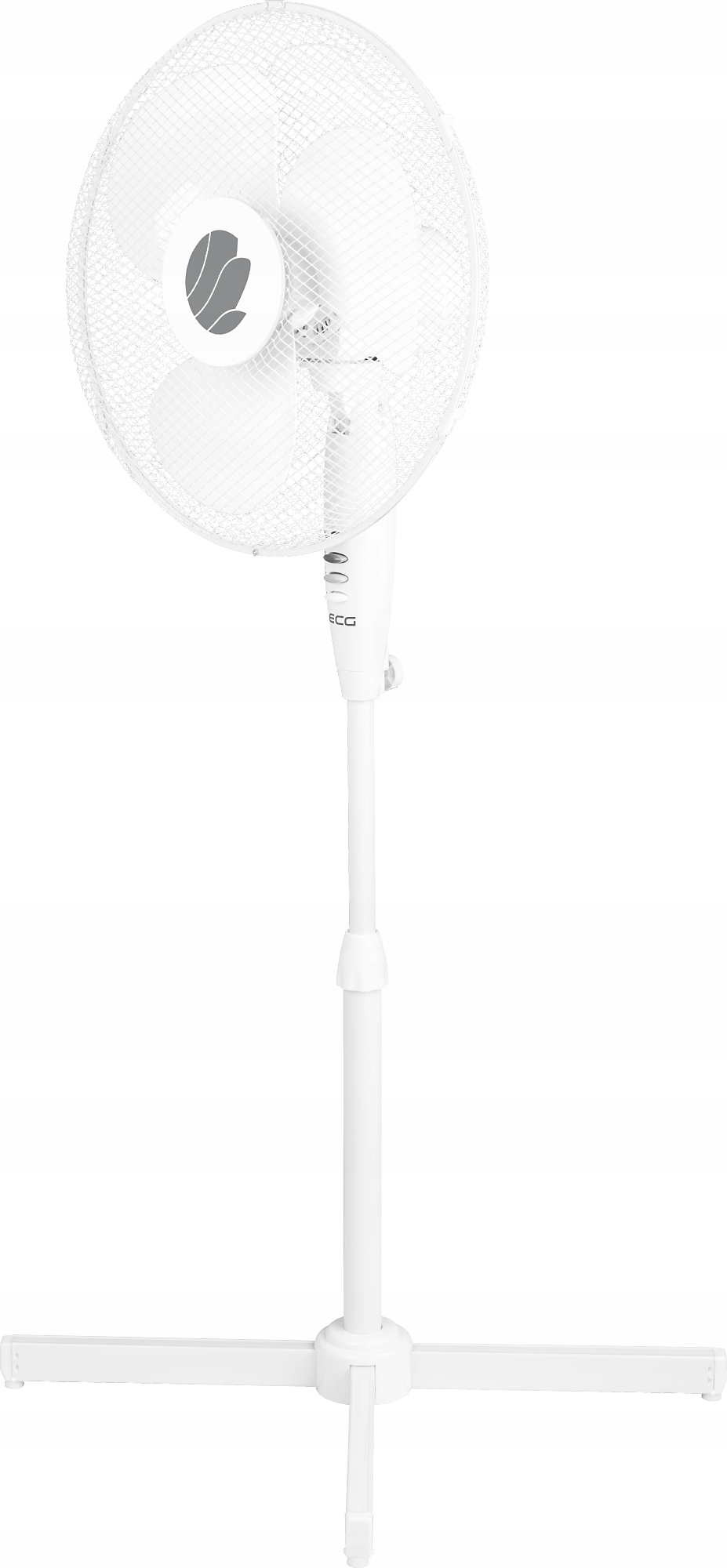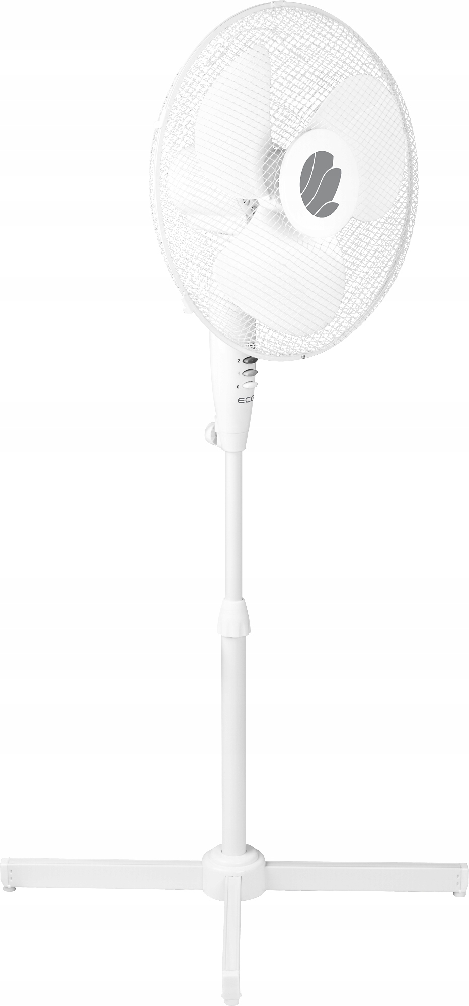 - Вентилятор стоячий з хрестовою основою приємно освіжить вас у спекотні дні. Вентилятор діаметром 40 сантиметрів має три швидкості, регульовану висоту та кут обертання, що складається та регулюється. Звичайно, він також оснащений захистом від перегріву. Доступний у білому кольорі.