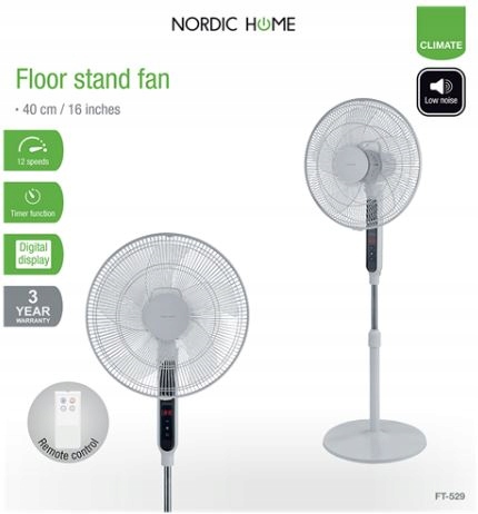 FT-529 від Nordic Home — це потужний і тихий підлоговий вентилятор з дистанційним керуванням, функцією таймера і b>РК-дисплей.