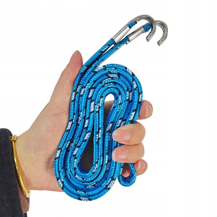 Багажні стрічки з гачками є важливою частиною спорядження для мандрівників, які шукають ефективний спосіб надійно закріпити свій багаж. Використовуйте їх при транспортуванні на автомобілі, мотоциклі, скутері, велосипеді або човні - їх універсальність дозволить закріпити вантажі в різних умовах. Завдяки еластичності гумок ви можете легко підлаштувати їх під форму і розмір обладнання, що транспортується, забезпечуючи при цьому його безпеку. Металеві гачки забезпечують надійне кріплення гумових смуг до різних поверхонь, таких як ремені, багажники або дахи. Довжина кожної еластичної стрічки становить 150 см у нерозтягнутому стані, вона надзвичайно міцна та гнучка. Замовляйте зараз і насолоджуйтеся безпечним транспортуванням свого багажу, куди б ви не пішли!