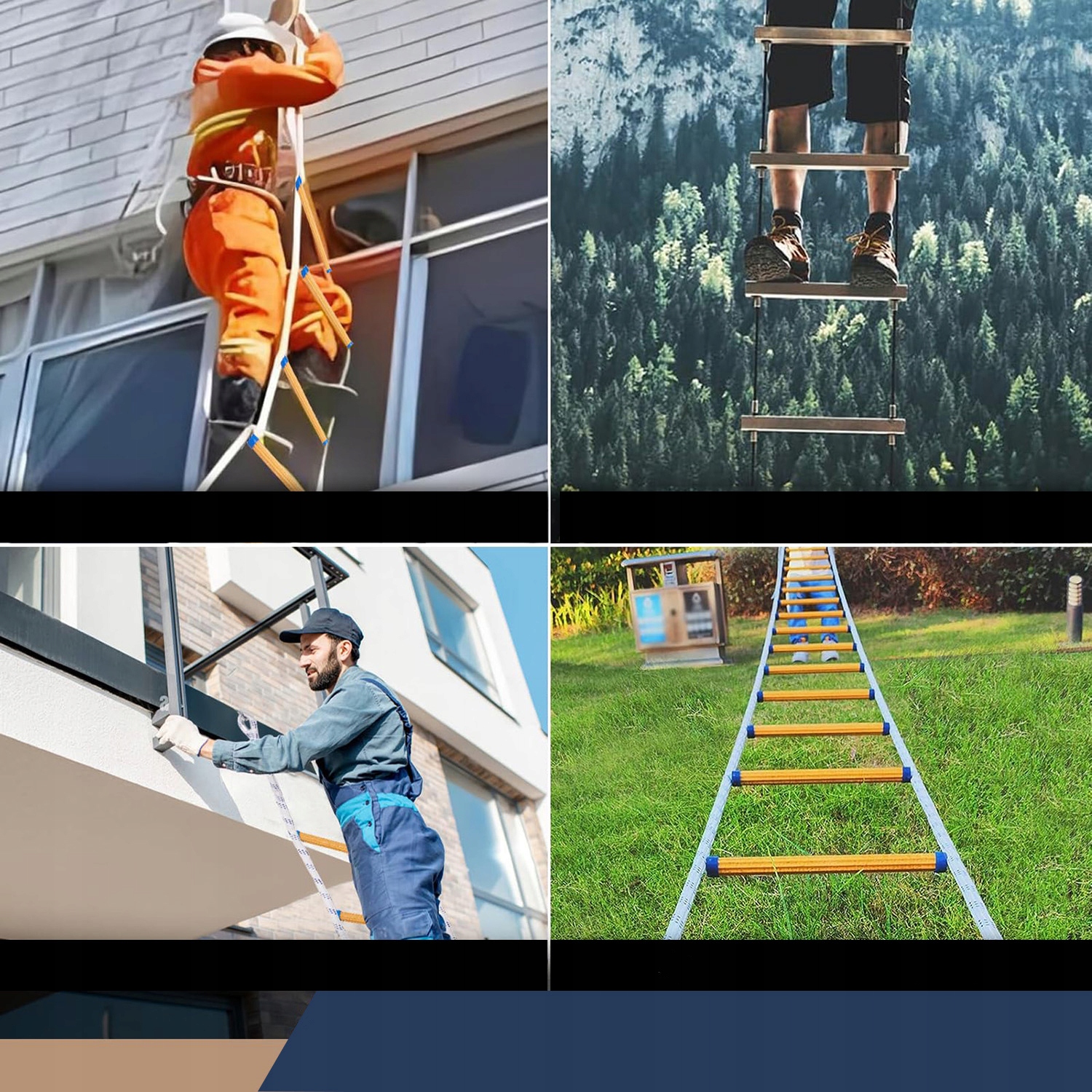 【Міцний і міцний】. Щоб забезпечити вас міцною драбиною, наша аварійна драбина використовує лише найякісніші мотузки та смоли, які можуть стати вашою підтримкою в разі надзвичайної ситуації. Завдяки своїй міцній конструкції він може витримати вагу понад 150 кг, що робить його незамінним вибором для будь-якого дому чи офісу, який хоче залишатися в безпеці.