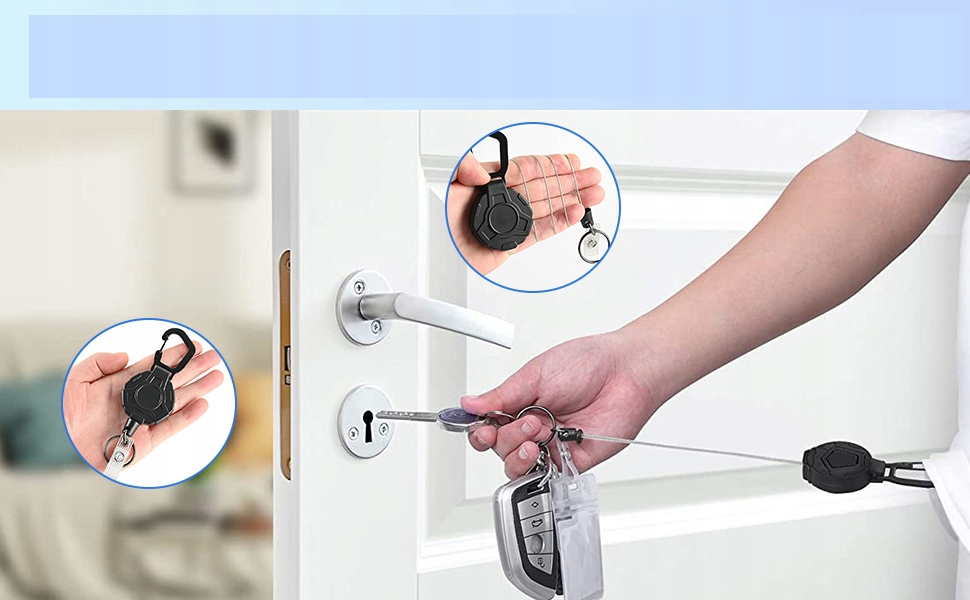 ▲ 【Розсувний брелок】Цей висувний подовжувач на котушці довжиною 70 см більш ніж достатній для того, щоб зручно дістати його до рук. Зручно відкривати двері без заплутування ниток. Унікальний дизайн, еластична струна розумної довжини та проста у використанні.