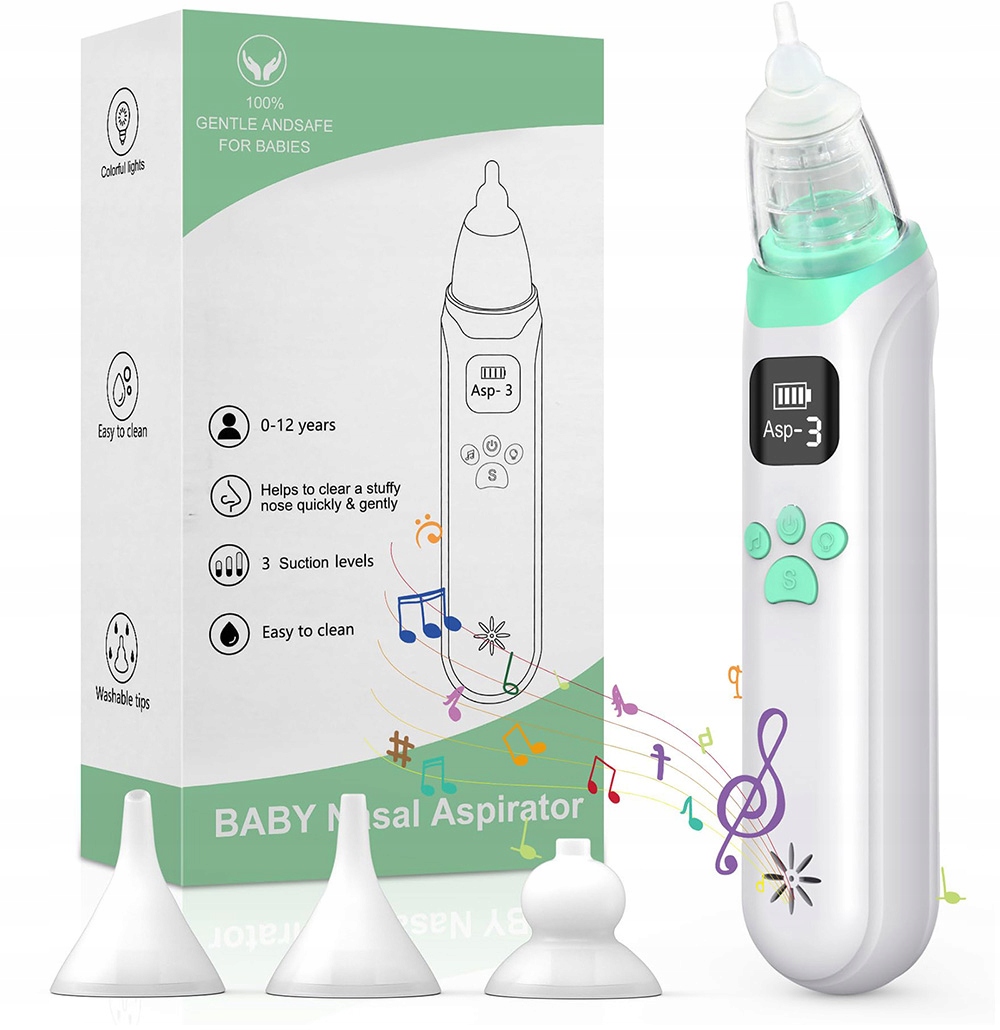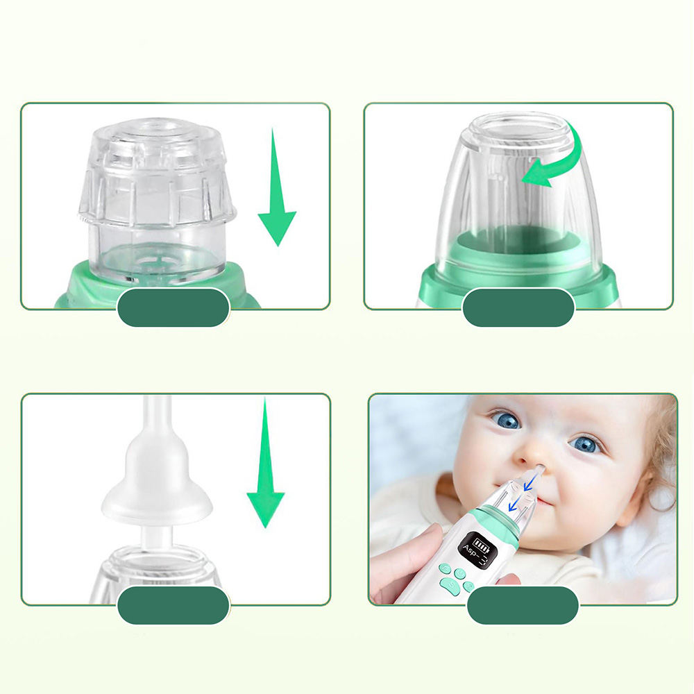 1. 【Сильна сила всмоктування】 Цей аспіратор немовлят для немовлят характеризується високою силою всмоктування до 65 кПа. Три рівні всмоктування можна регулювати, щоб видалити майже кожен тип нежить. (ПРИМІТКА: Спочатку пом'якшуйте стійкий нежить і слиз за допомогою носової розпилювальної солі. Залиште 30 секунд до 1 хвилини до використання аспіратора. Три різні розміри наконечників для багаторазового використання для носа підходять для дітей різного віку та з різною висотою.