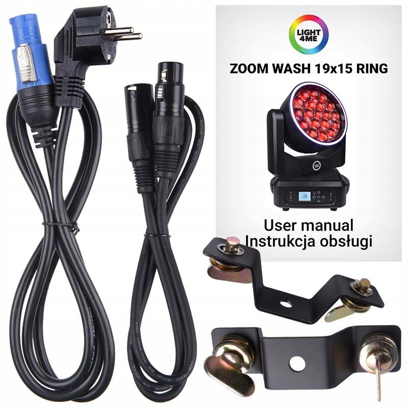 - Включено: шнур живлення, кабель DMX, кріпильні ручки, посібник користувача (PL/EN)