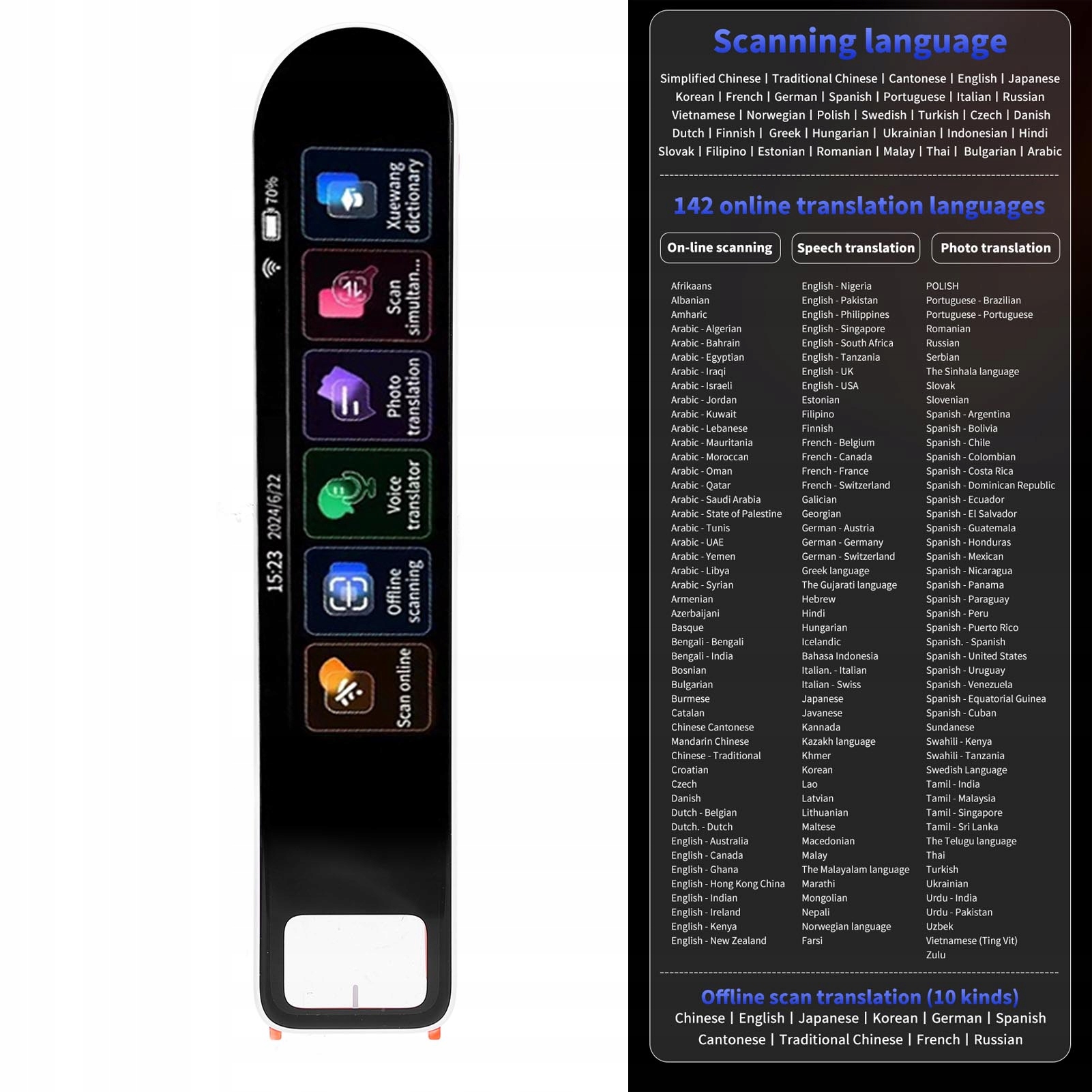 Мовна перекладач ручки 142 Мови Швидка ідентифікація QC -сканування