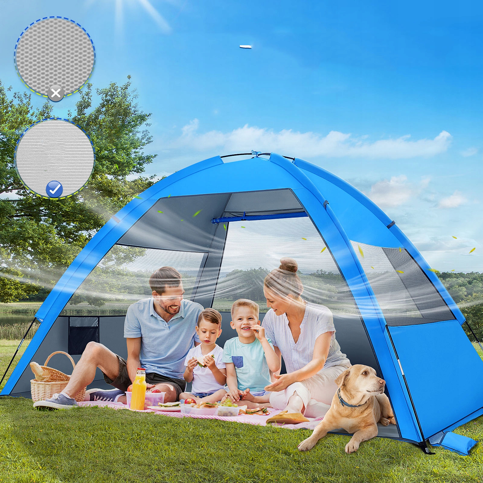 ✅, побудований з поліестеру, покритого сріблом, покритому покриттям UPF 50+, захистіть вас та вашої родини від шкідливого ультрафіолетового випромінювання. Краще циркуляцію повітря, запобігайте задушливому та вологому вузькому простору. З піском у 4 кутах, щоб зробити намет стабільним. Сонячний.