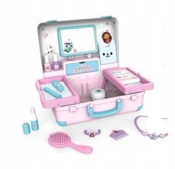 Валіза Gabi's Cat House з 15 аксесуарами, такими як тіні для повік, блиск для губ, лаки для нігтів і аксесуари для волосся. Всі продукти не є справжньою косметикою. Зроблено у Франції.