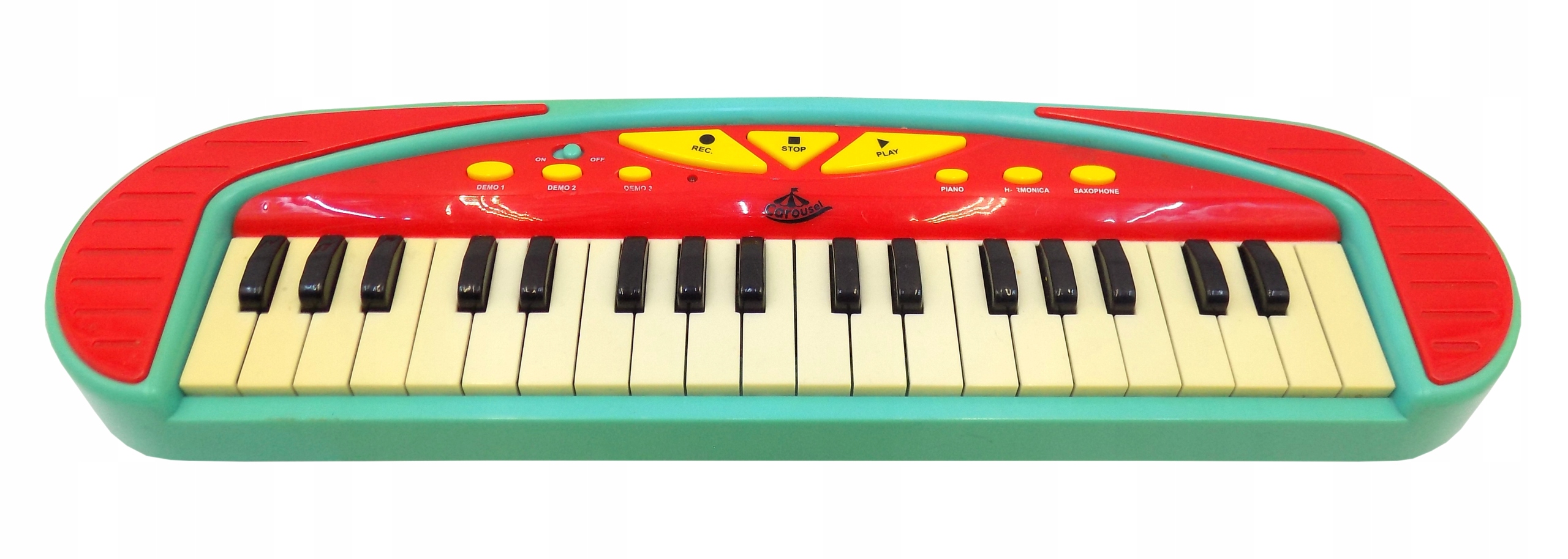 Моя перша іграшкова клавіатура від Carousel. На батарейках, справний. Розміри висота; 4 х 41 х 11 см. Сліди використання.