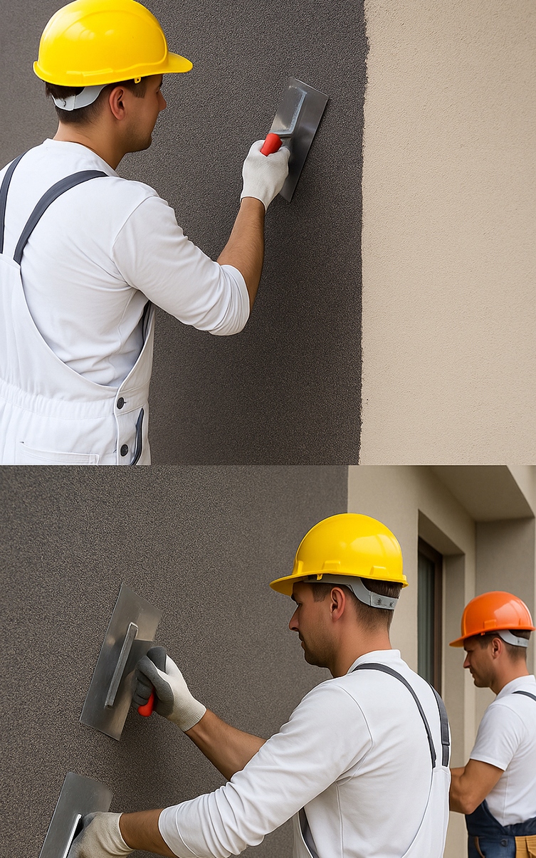 ✅ Захист поверхні – захистіть свіжу штукатурку від надто швидкого висихання (вітер, сильне сонце) та опадів до повного затвердіння.